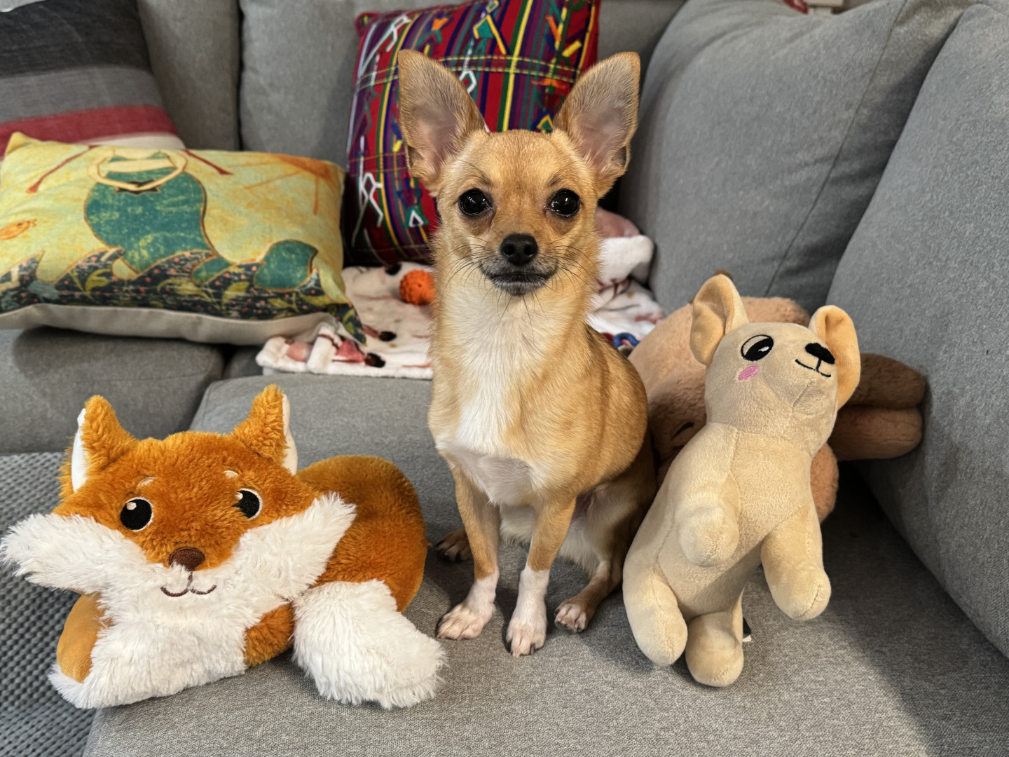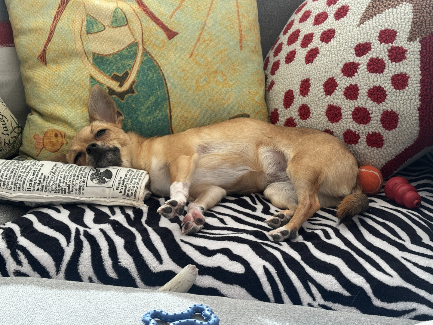 Stella loves little tennis balls, deer antlers and milk bone mini chewy treats.