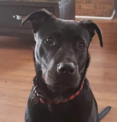 She is a mix breed, pit & lab. She is the most gentle dog ever. Shes does the basic commands, but she also knows when it time to relax.