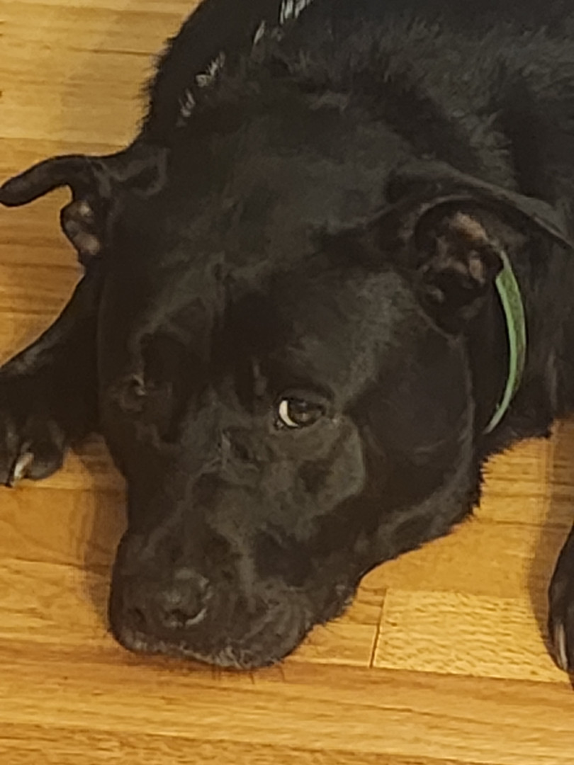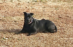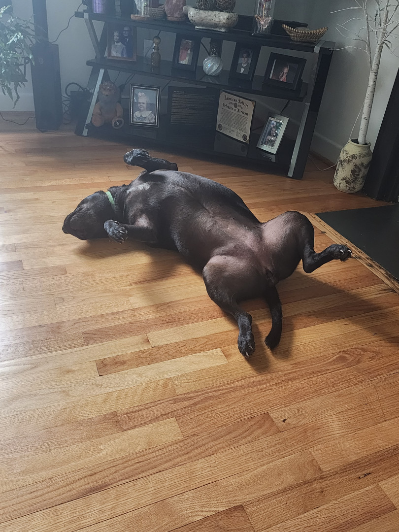 She is such a good girl. She came to us from a person that got her from a shelter. She loves her belly rubs, and pats on her backside.