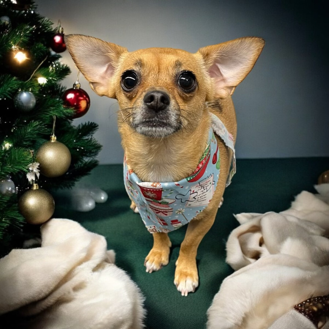 Every room Stella enters she captures the hearts of everyone. Stella’s bubbly and sassy personality is as big as her ears. She loves to play tug of war, gets the zoomies frequently, and will cuddle in your lap any time of day. Singing is her favorite activity, and she loves all music, especially showtunes. Stella is a star!