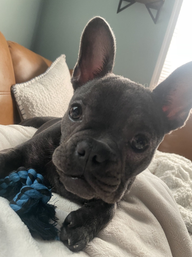 Stevie has the perfect smile. Her ear point up and her little lower lip sticks out making her so cute. We call it the boo boo lip. For being only 5 months and 12lbs she is potty trained and knows the command “sit”. Stevie will learn more commands but for now sitting and allowing me to give her baths and love is perfect. Stevie told me she will be perfect for the job. Thank You