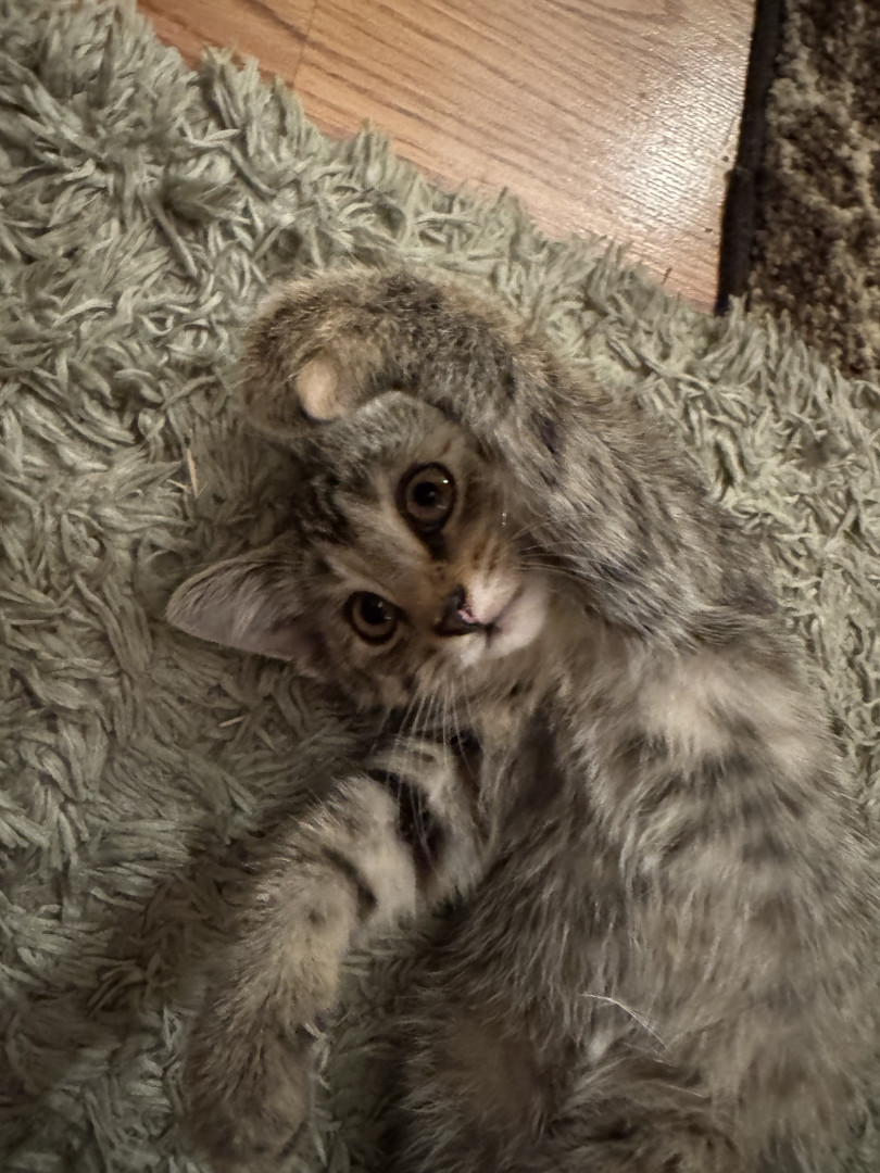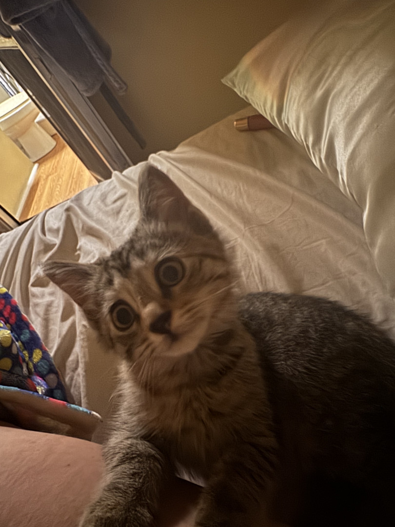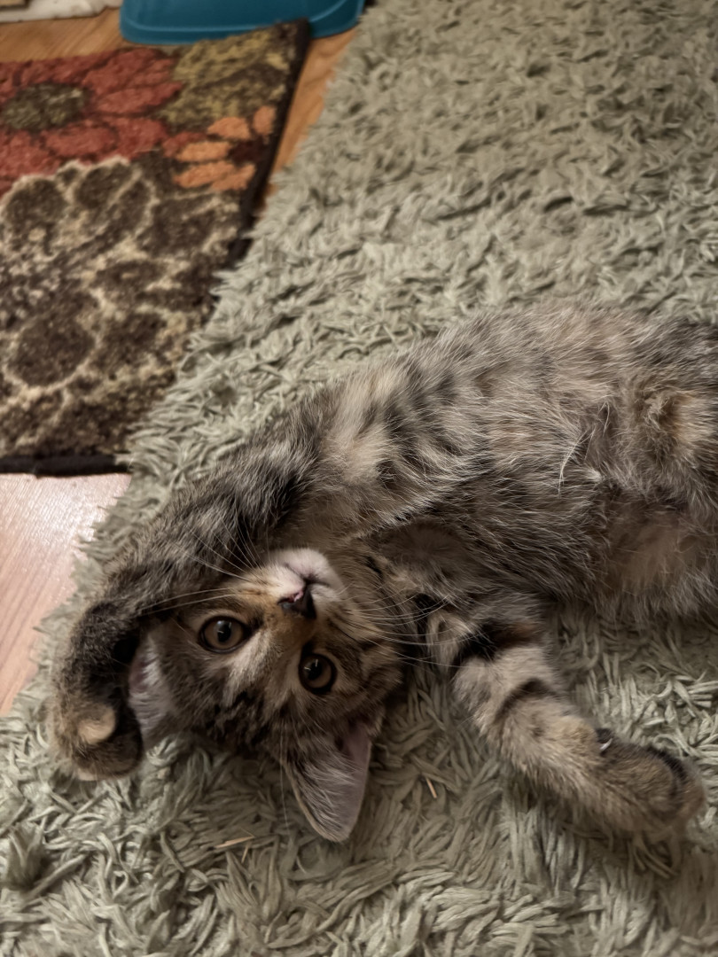 I found this little kitten under a bush in the cold pouring down rain. She is the most kittney kitten I have ever had. She saved me