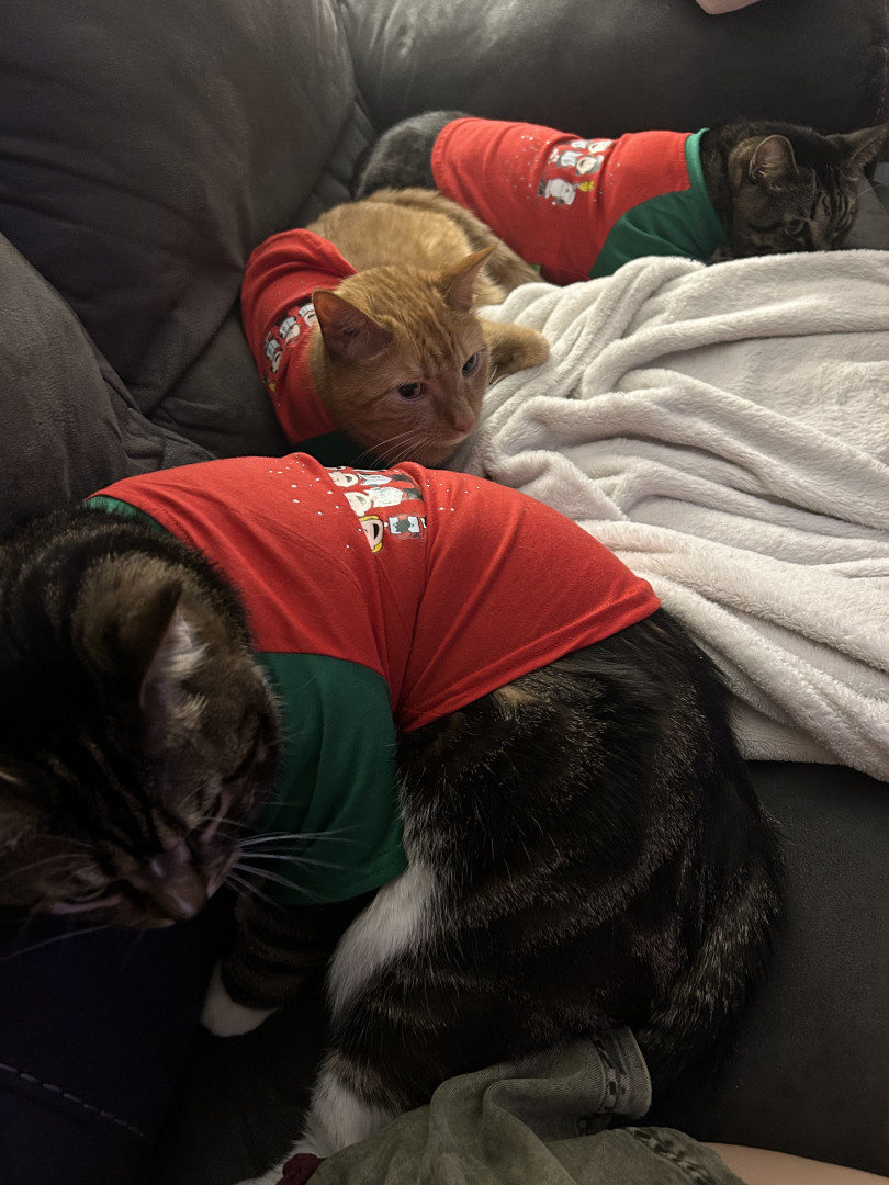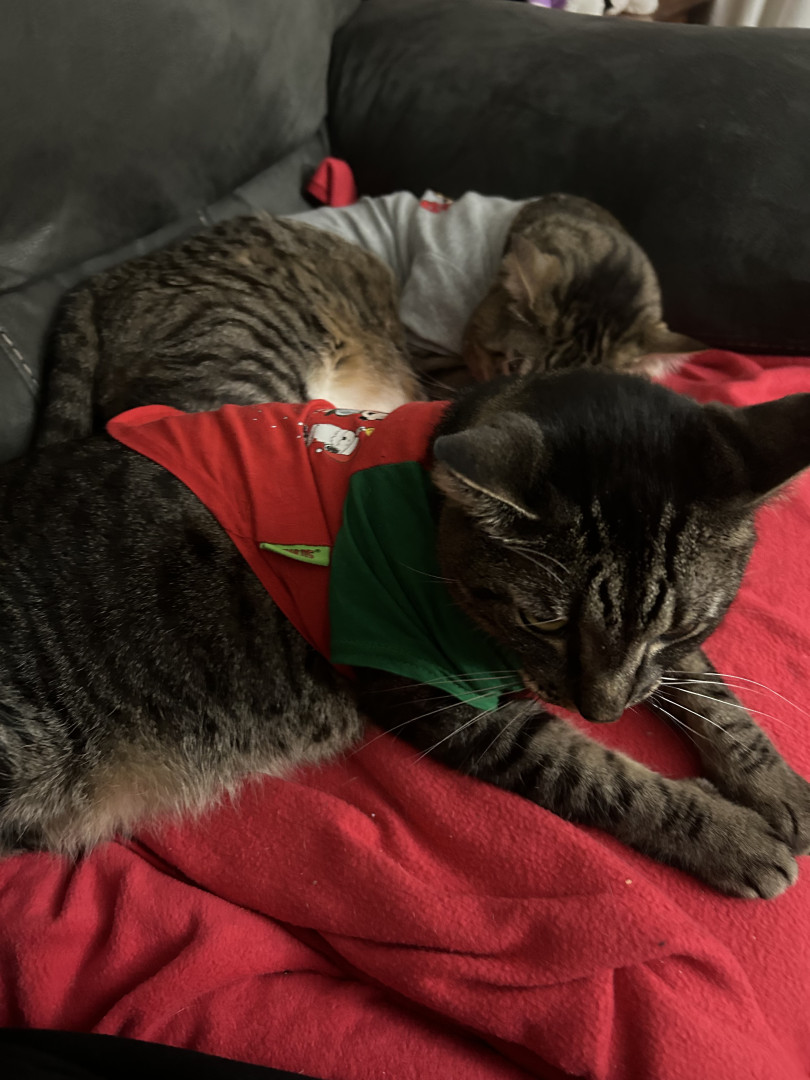 He is so sweet and everytime you pass him at the cat tree he reaches out and pats you so you will pet him he also greets you at the door he also likes his t shirts! He is the only one out of my cats that wants you to put his shirt on I know he likes it too because all of my other cats take their shirts off if I put one on and he doesn’t he wears them for a couple days and then switches into another!