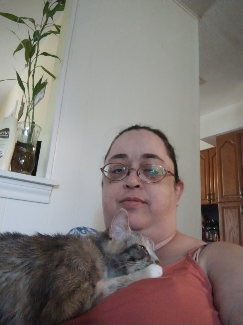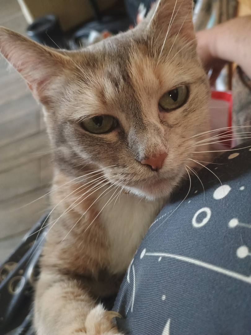 She was a rescue cat that was found at a motel where we worked and she was little bitty baby. She is a complete human in a cat suit..💙
