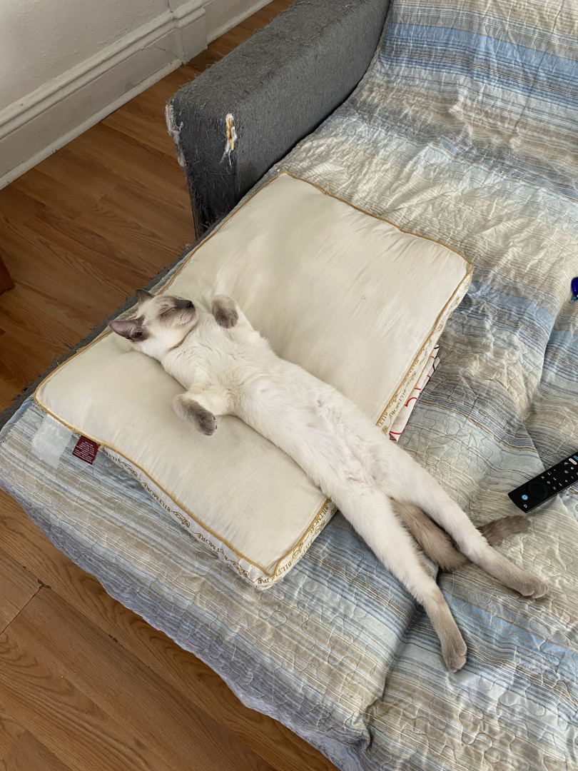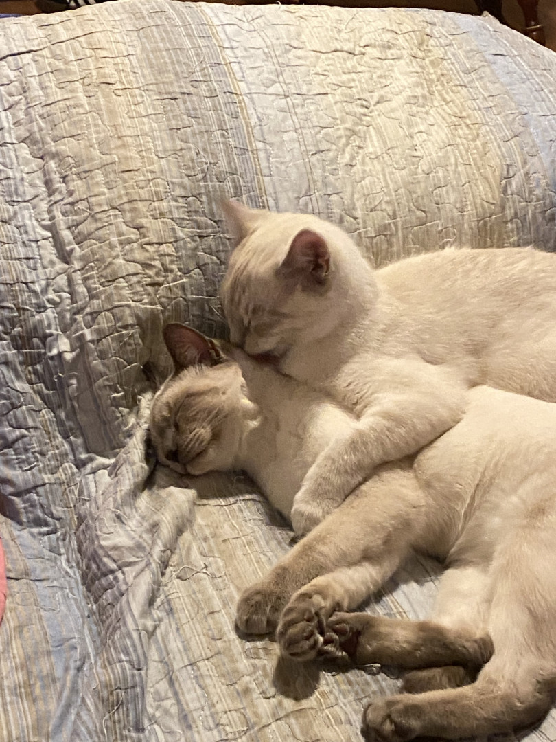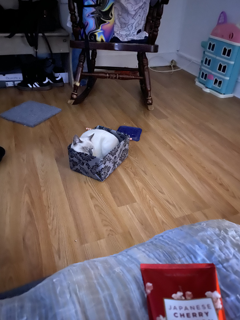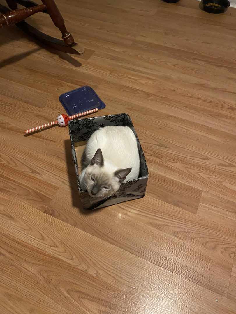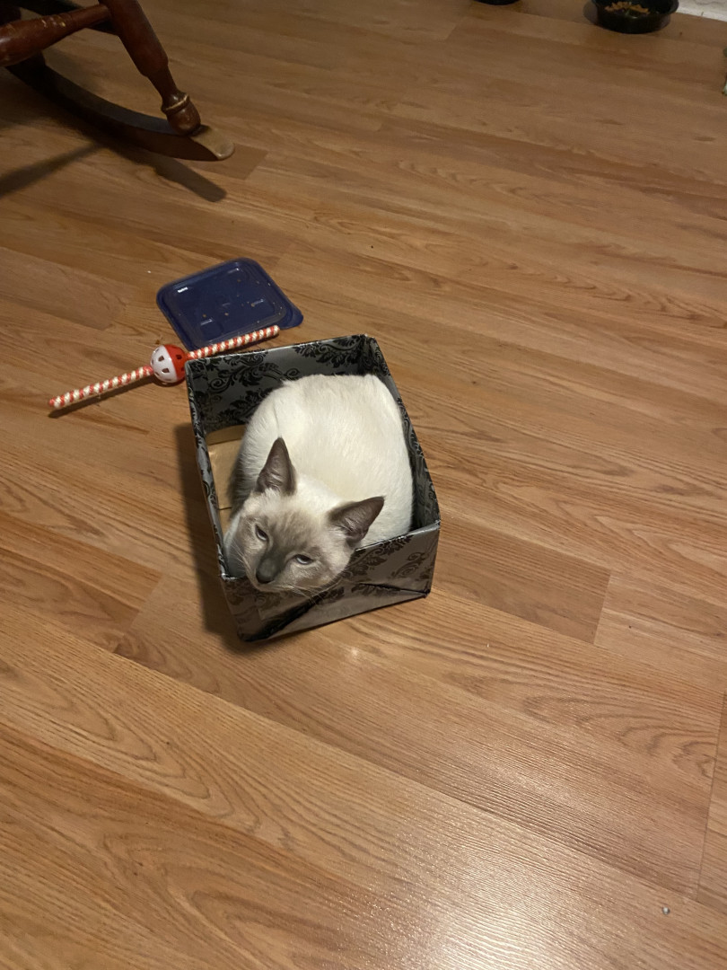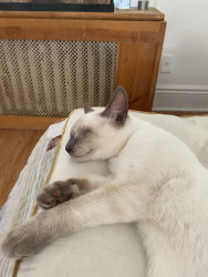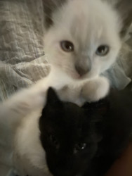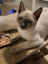 He’s the cutest Siamese baby with big blue eyes, he’s one of four brothers, he loves to play and snuggle with my 10 year old daughter Bella Rose