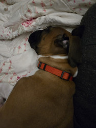 He loves to play fetch and go on walks. He loves to snuggle and lay close to me.