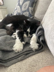 He is very laid-back. He loves to cuddle and he’s just extremely cheaper