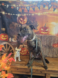 She's a storm she goes from happy to crazy in .5 seconds but can be the most gentle puppy to a crazy toddler shes a pitbull golden retri