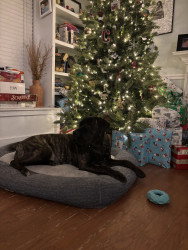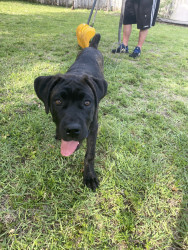 Stormi Lu is an 11 month old Cane Corso. She weighs almost 100 pounds but thinks she’s the size of a chihuahua. She loves to play.