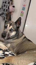 Stormy was a stray, found on the highway by me along with her baby I tried saving both of them but her baby got hit. (German Shepard/husky!