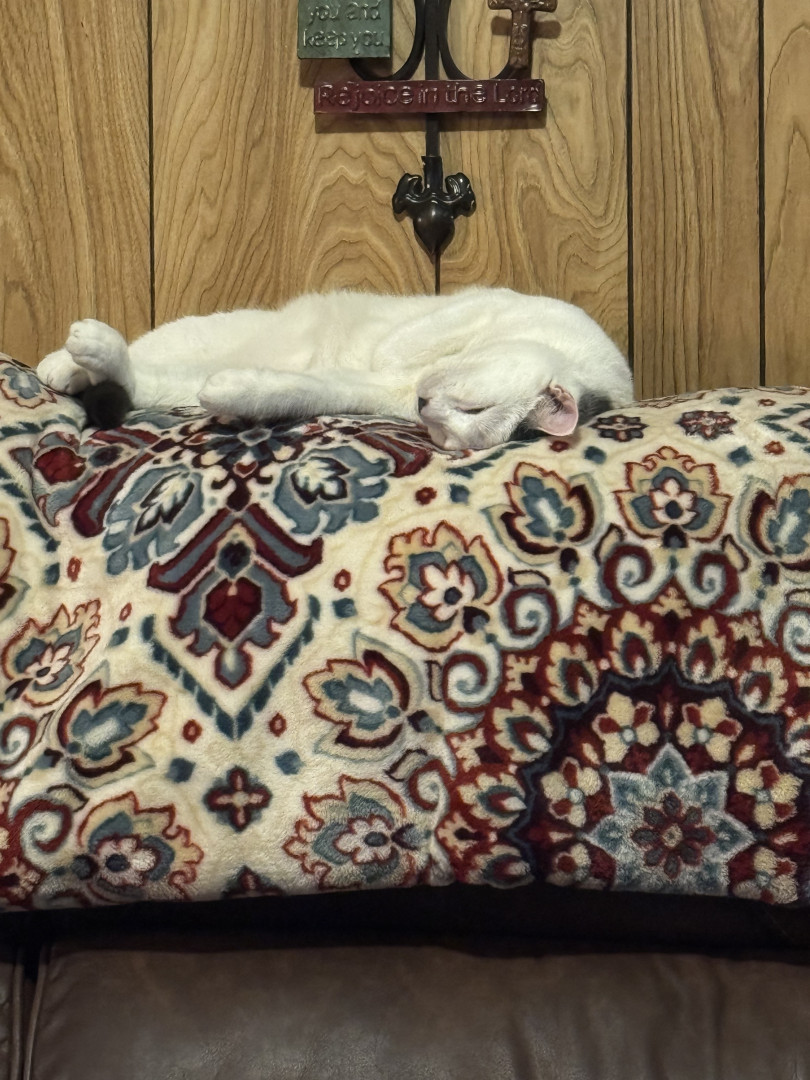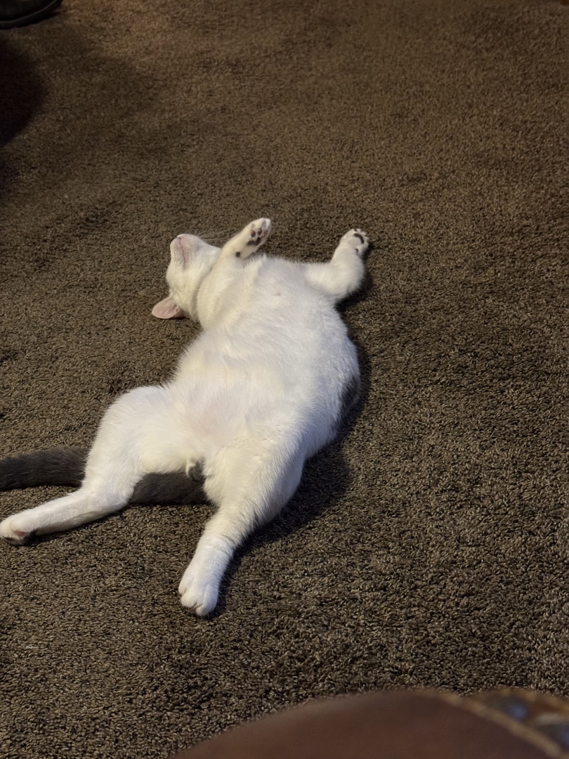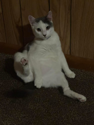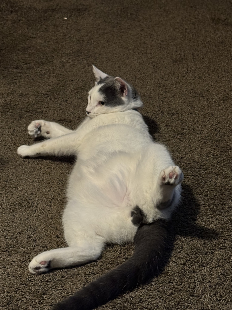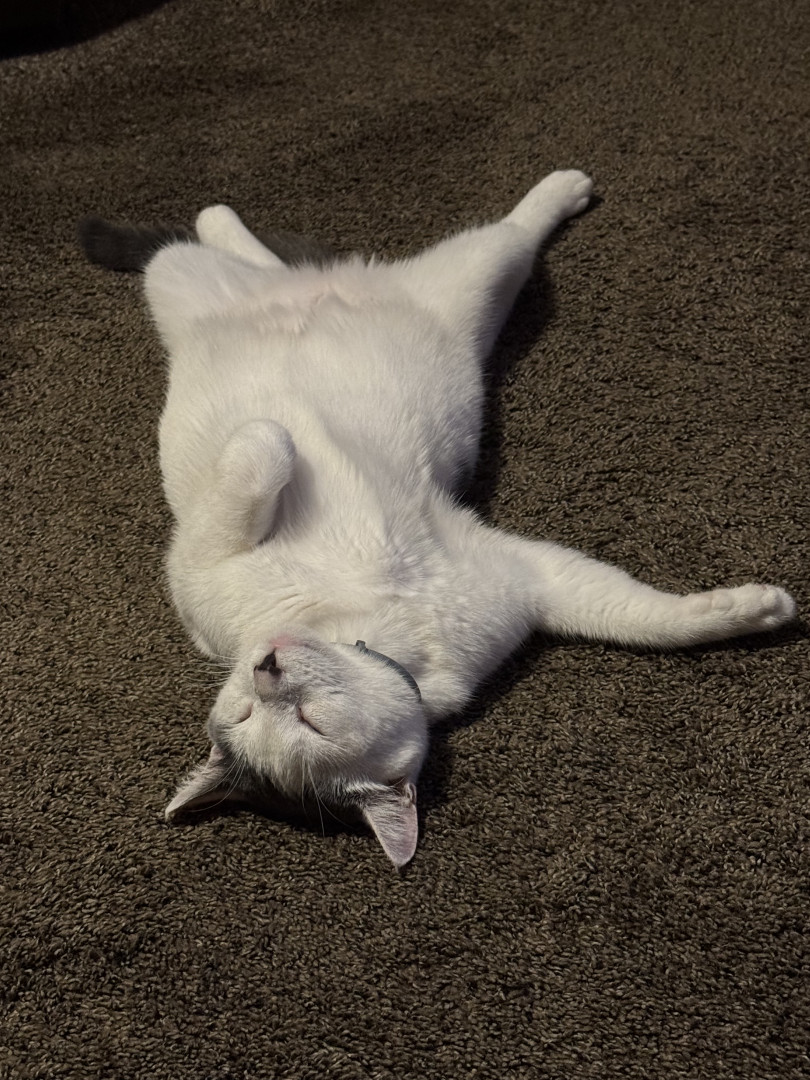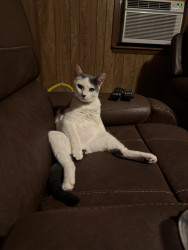 He’s the most lovable and playful cat we have ever had..He loves to play run jump and he has the best cuddles ever.