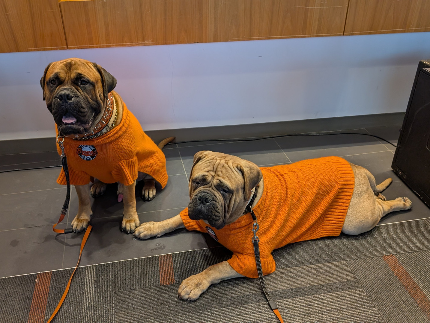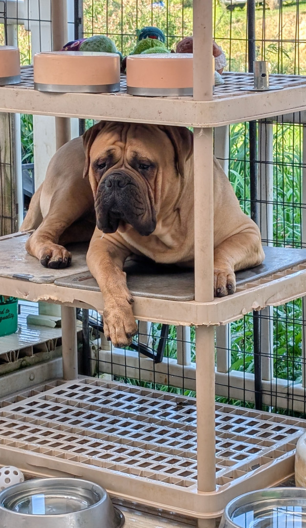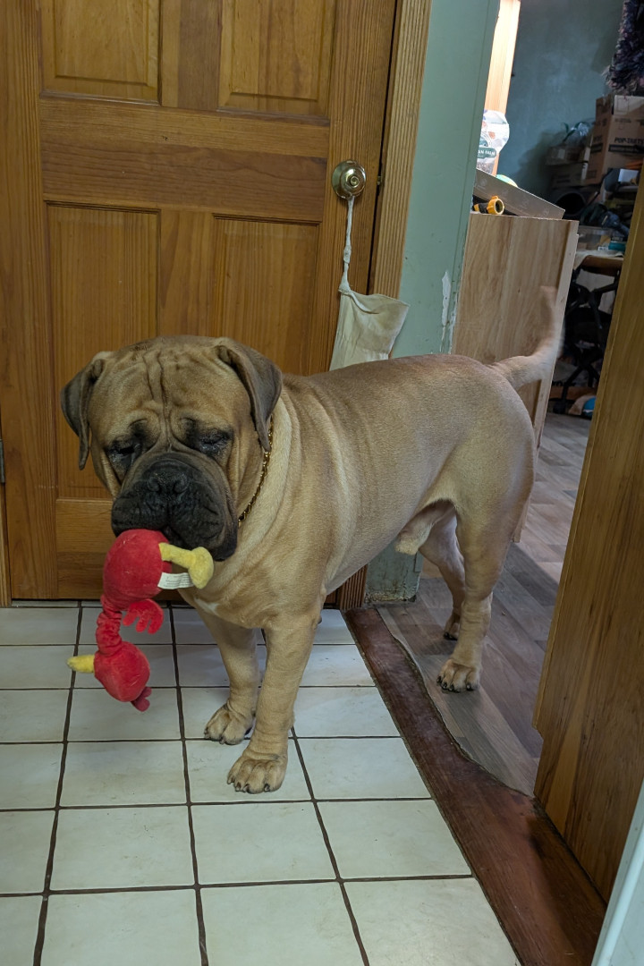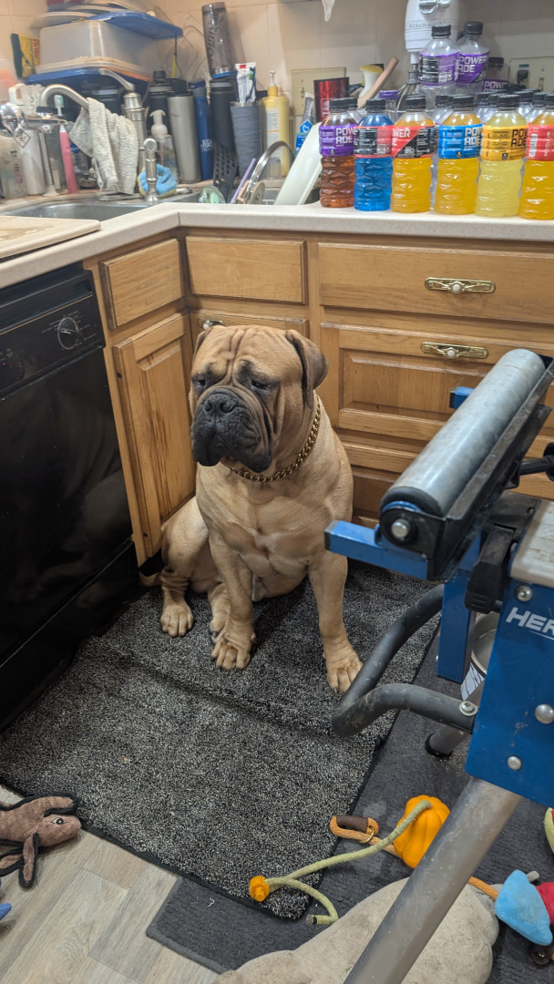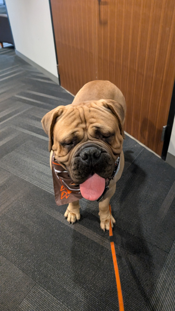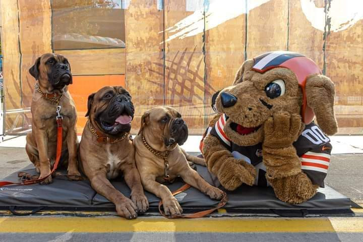 Stripes is a 2 year old Bullmastiff. He earned his AKC championship title. He was also the Cleveland Browns live Mascot.
