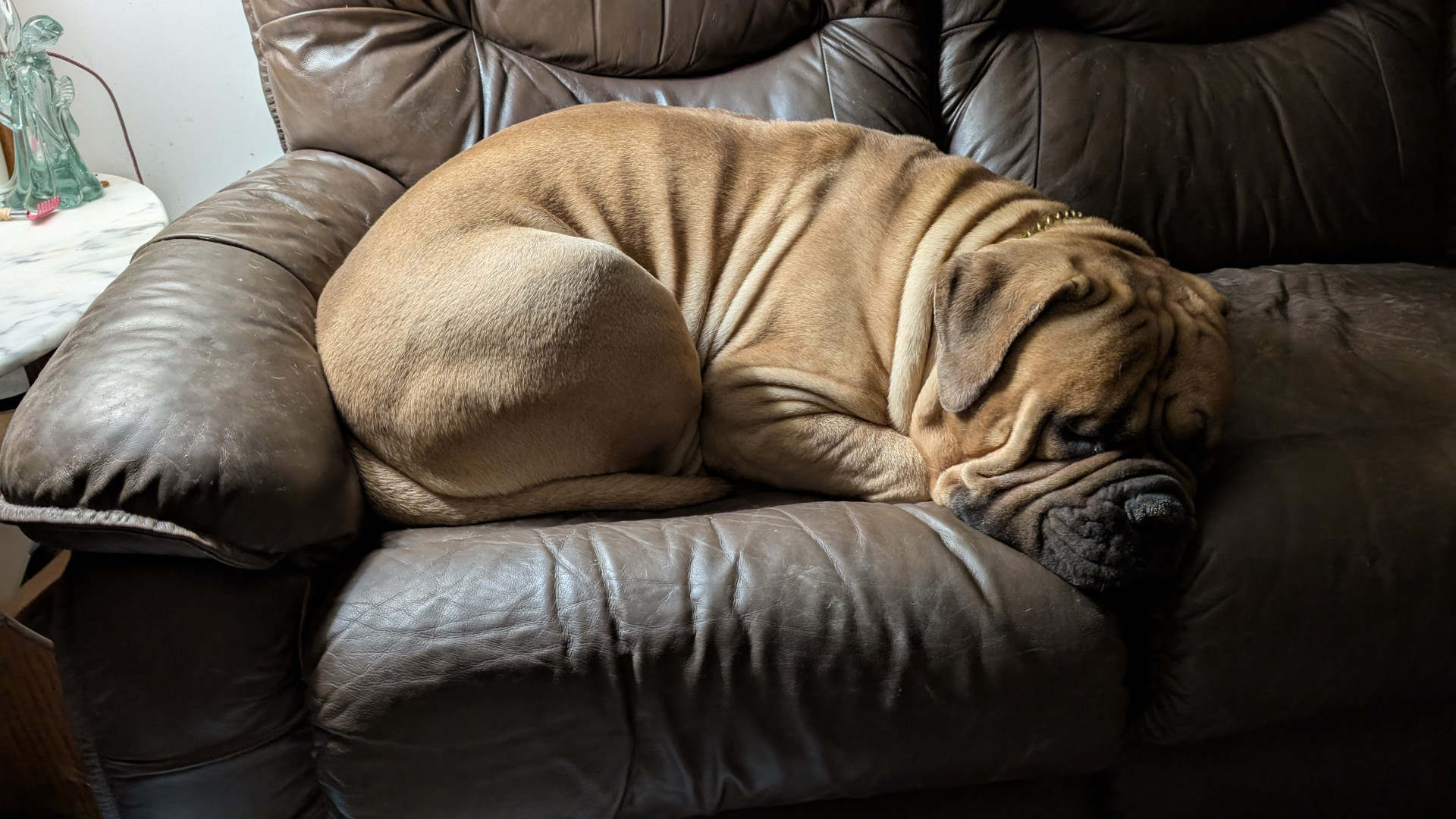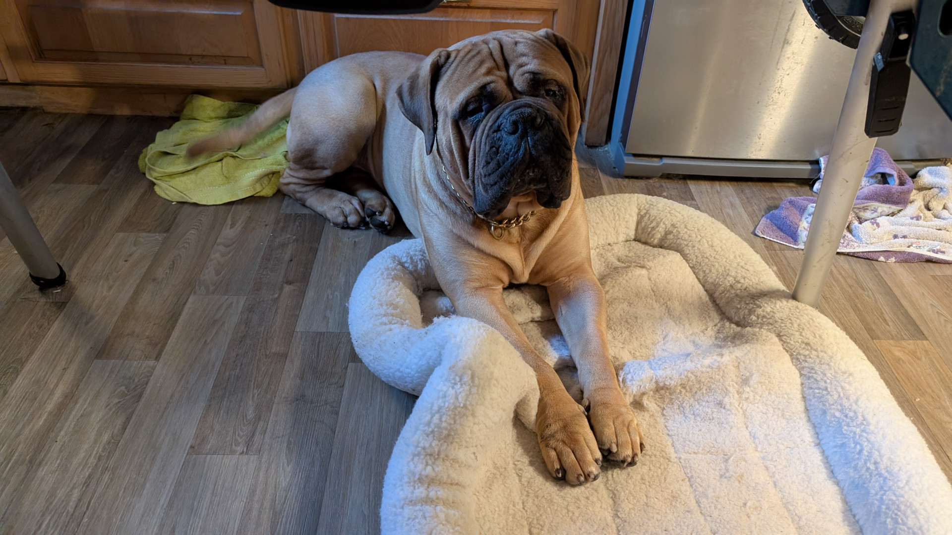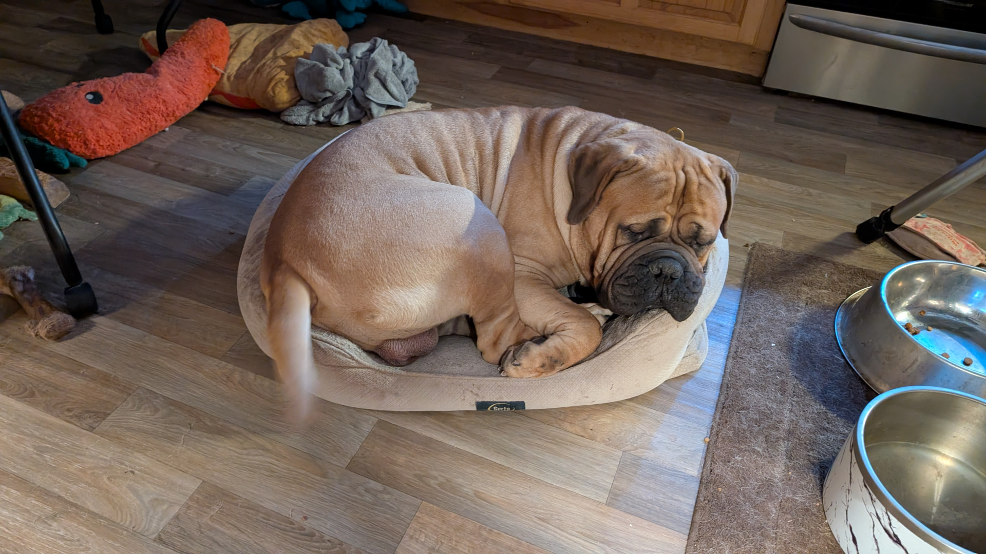 Stripes is a 2 year old Bullmastiff. He earned his AKC championship title. He was also the Cleveland Browns live Mascot.
