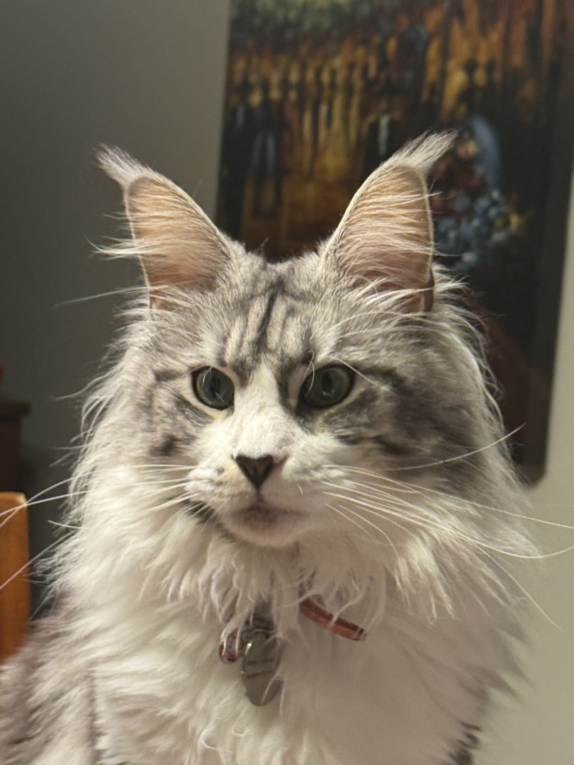 Suki is a VERY curious kitty. She is a 2.5 yrs old Maine Coon. She loves to play!! She enjoys climbing on the highest point in the house.