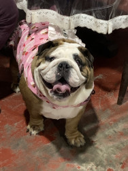 her favorite toy is her bulldog stuff toy and her go-to treat is pedigree dentastix