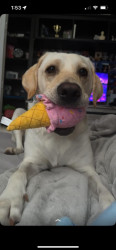 Summer is always happy. Try Lab loves shoes and socks. She loves to sleep above your head and the bedroom door needs to be open.