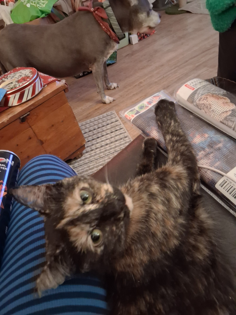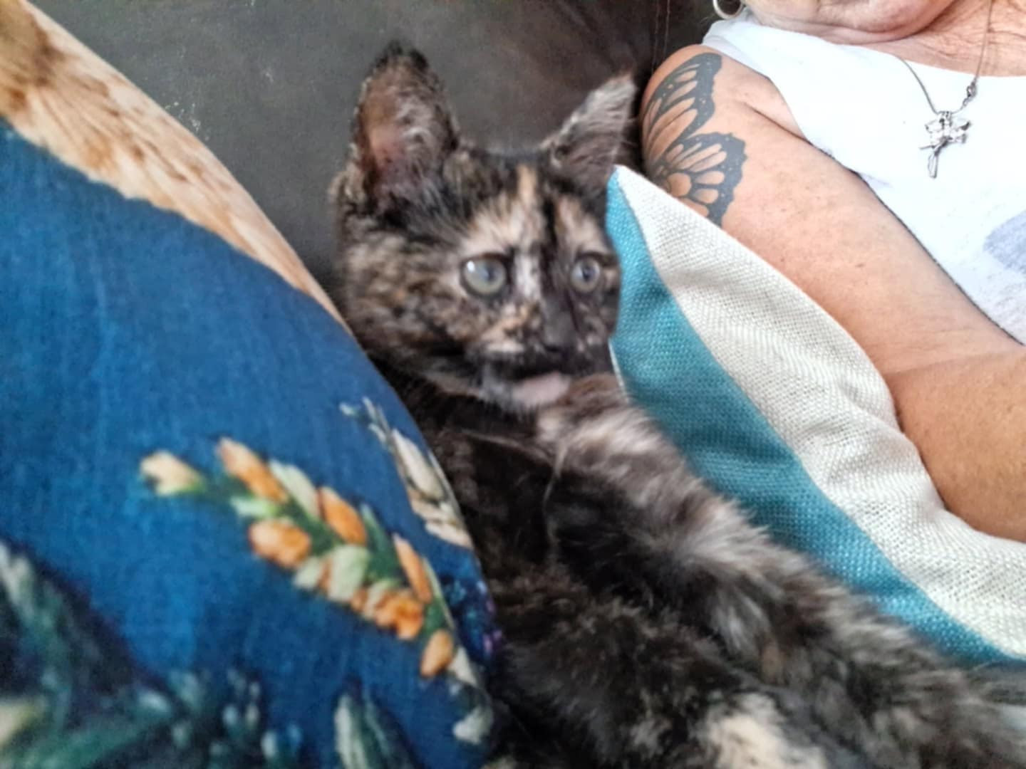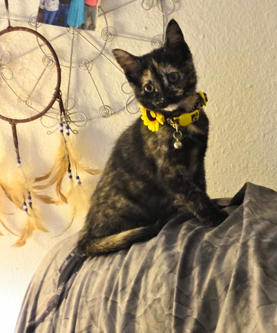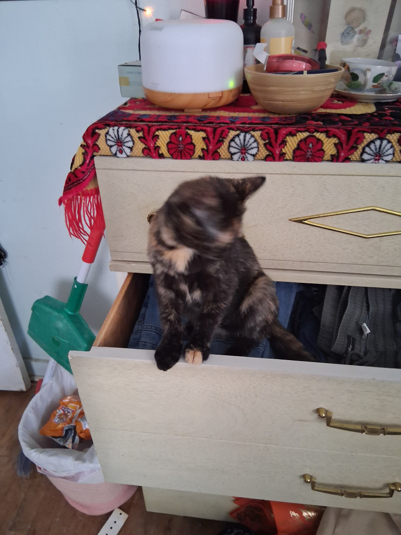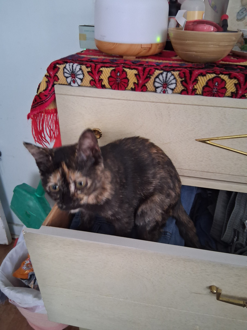 She is full of mischief and she was the only survivor in the litter of 7 kittens her mom wasn't a good mom and tried to kill her at 4 weeks old I took her in and that first day she lapped formula from a dis and used her litter box and never had an accident on the floor she sweet and salty all in one and she is quite the character