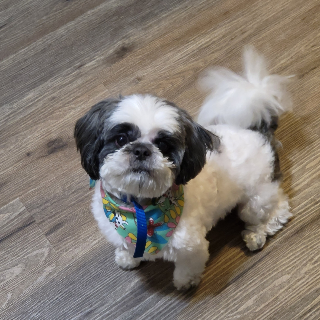 His name is Sunny! He’s from Florida! The sunshine state. He’s fast! Loves food! Loves to play! He’s a Shih Tzu! A companion dog! The best