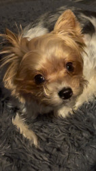 Sushi is a Parti Yorkie. She is tricolor little 4.75 lb. spitfire. She thinks she is the biggest dog around.