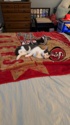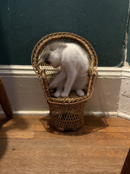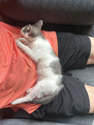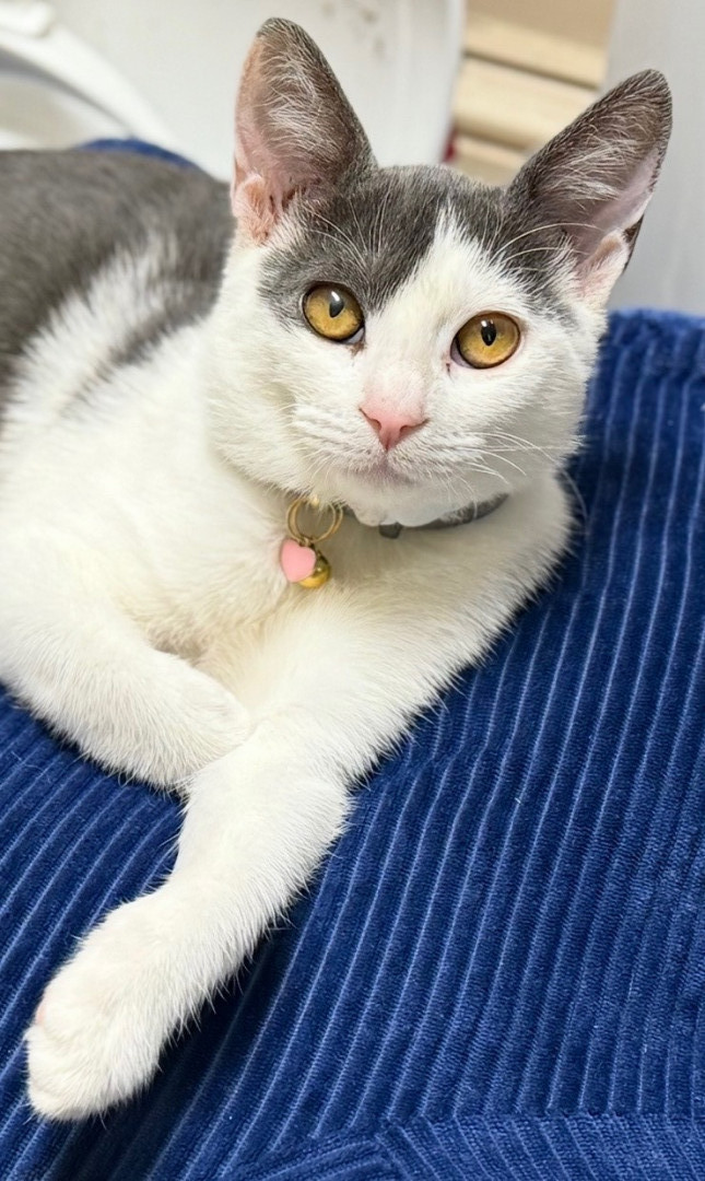 Learn MoreShe loves hiding in things and pouncing at passersbys. Addicted to cat tunnels, she’s super playful! She loves feather wands and her go to treats are the crunchy ones with the chewy centers. She’s always by our sides wondering what we’re doing! When she’s not playing, you can find her cuddled up with her younger, adopted sister Felony!