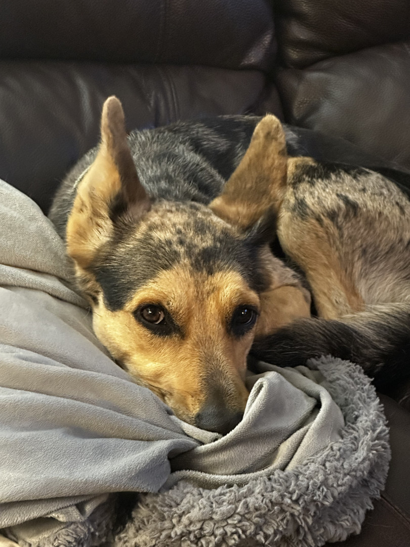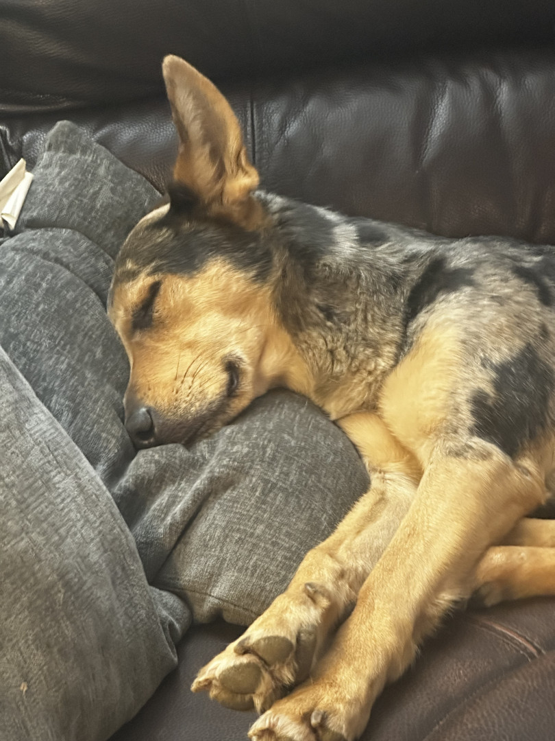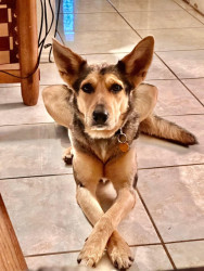 Sydney love to play, she love to play in the water, and those playing along the fence line and barking at people