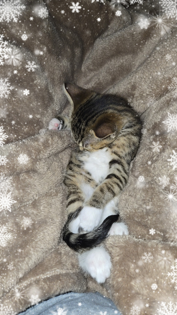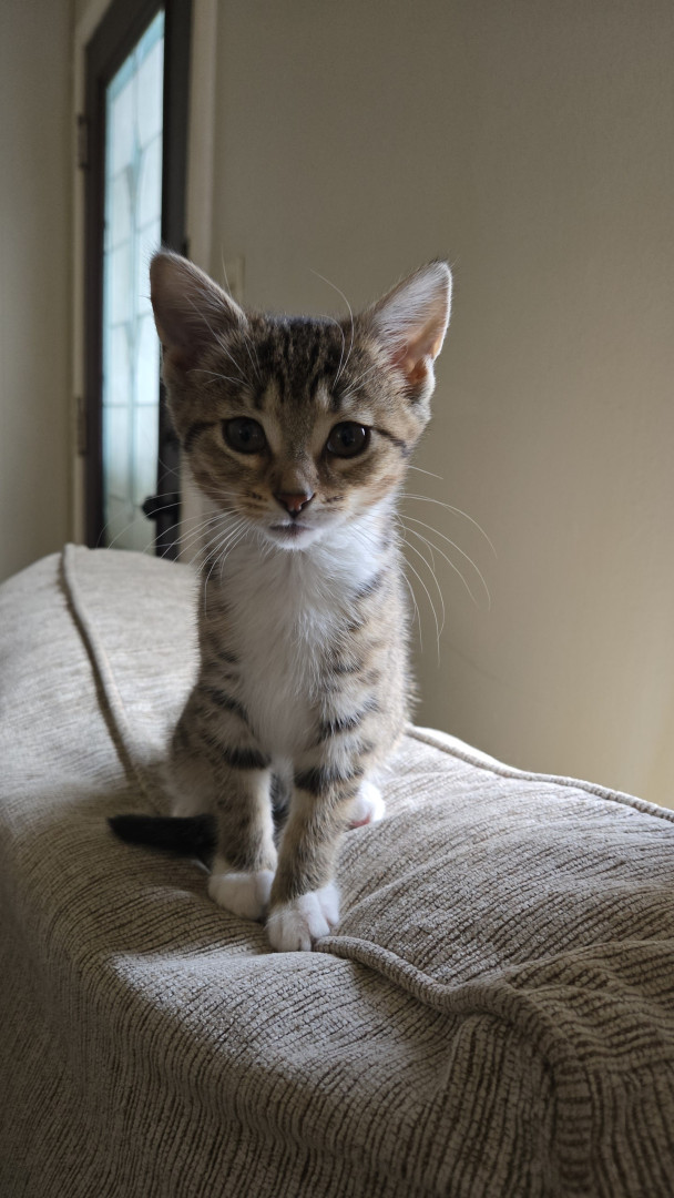 Tabby was the runt of the litter. Tabby is gonna be 5 months old and is full of energy tabby looks like she is only about 2 months old she is a loving playful kitty besides being so tiny.... her nickname is tiny tabby..