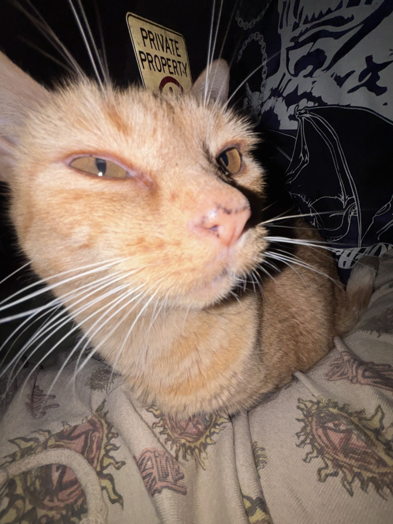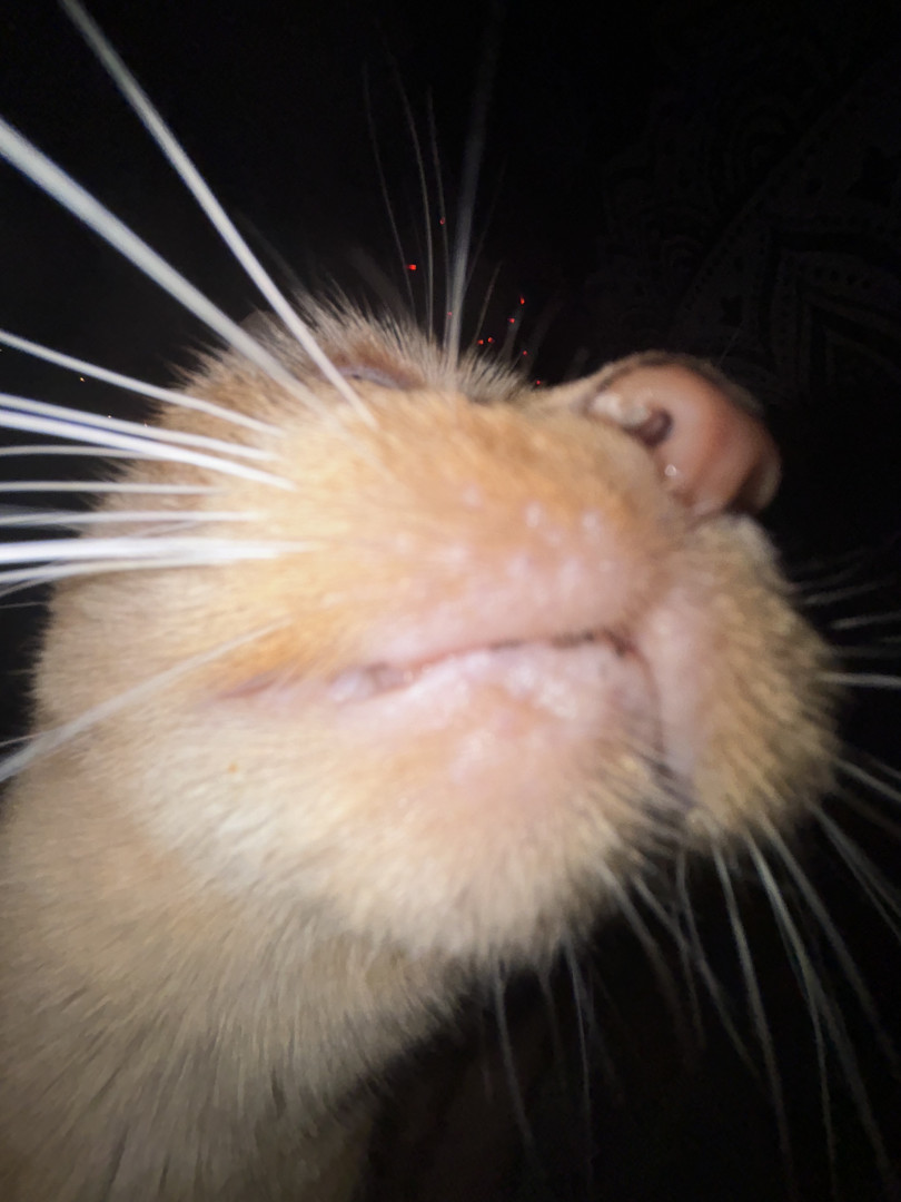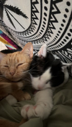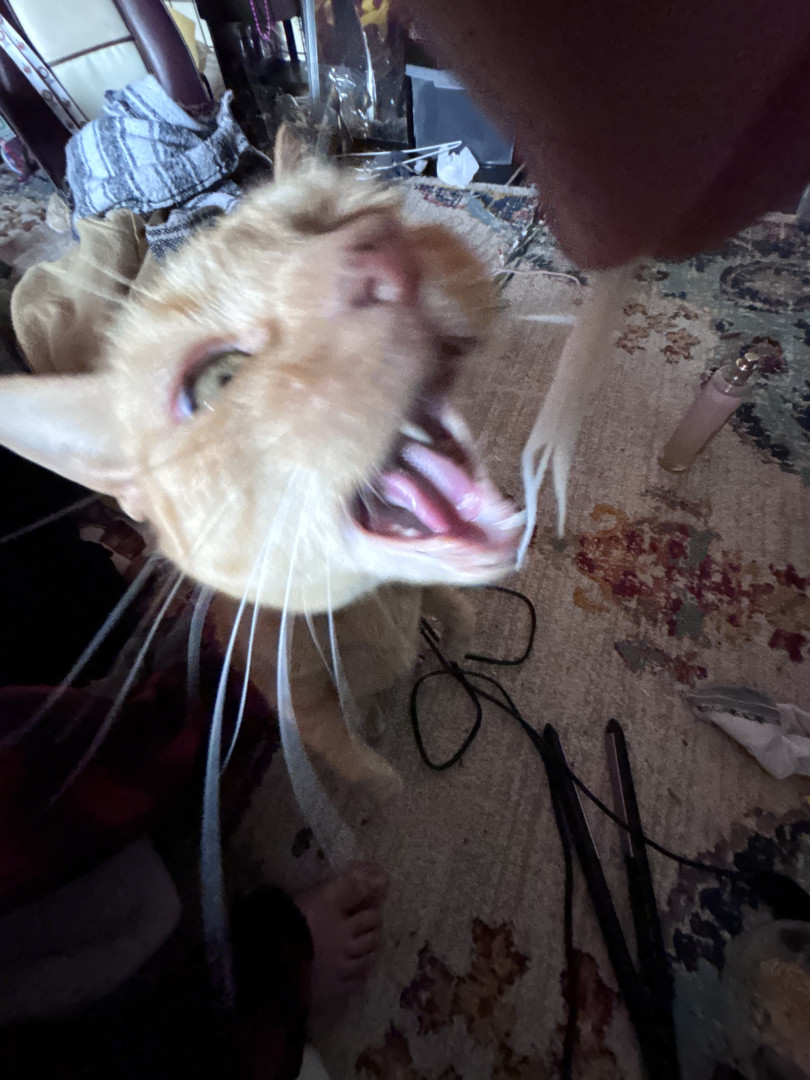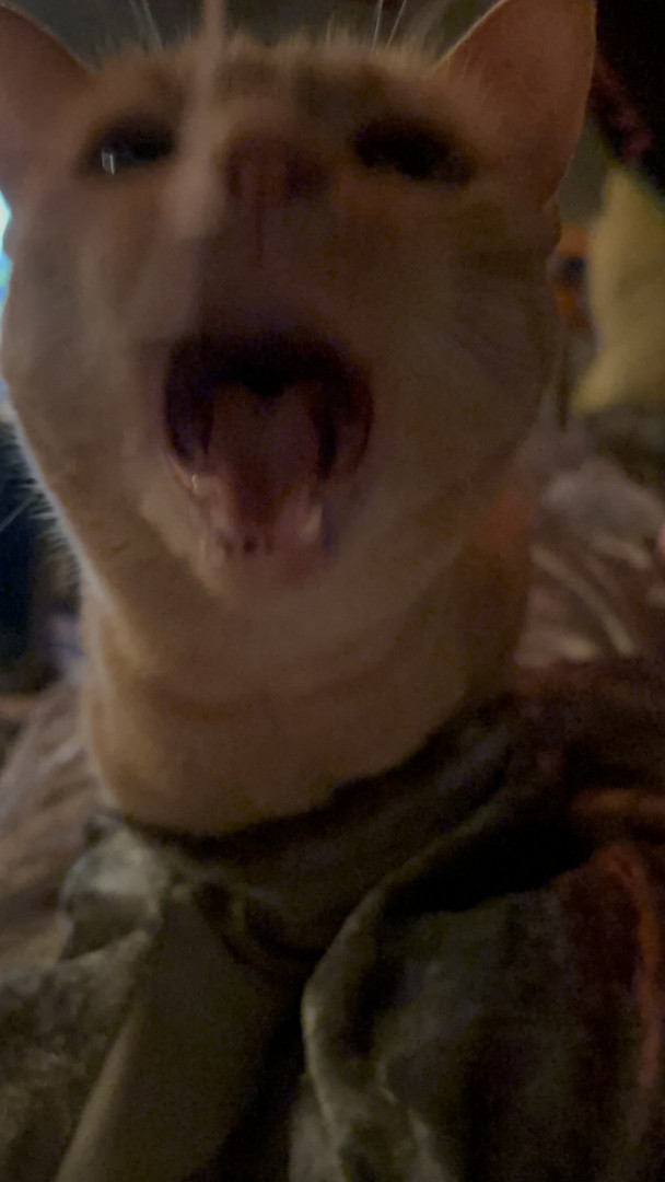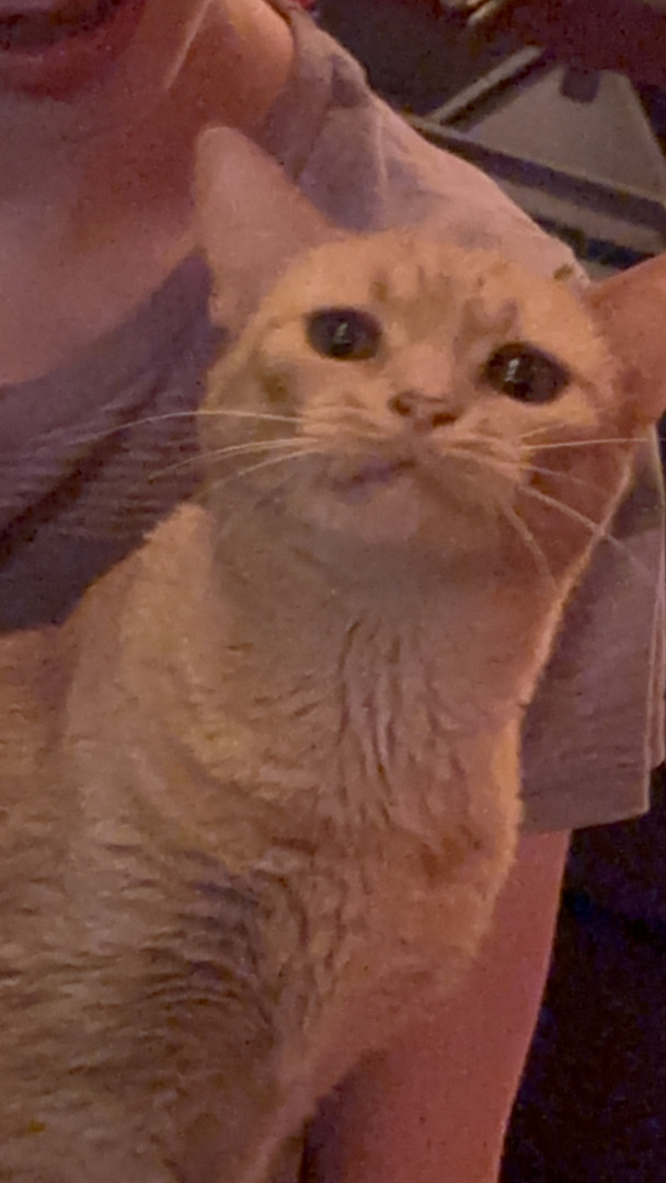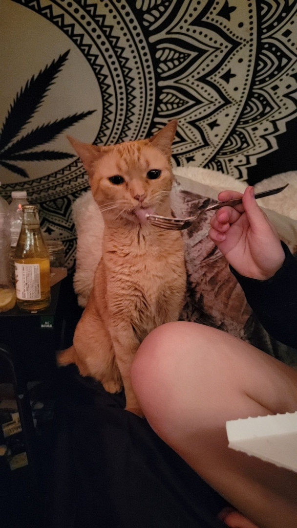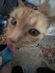 Tabby is an orange tabby cat who lives for any type of food. She is very loud and expressive and loves anyone who comes over.