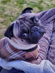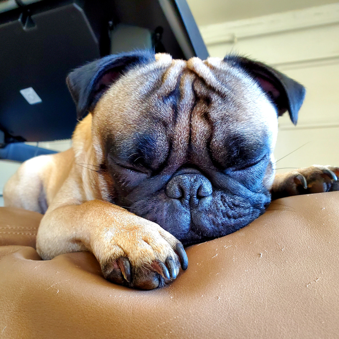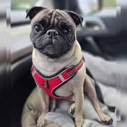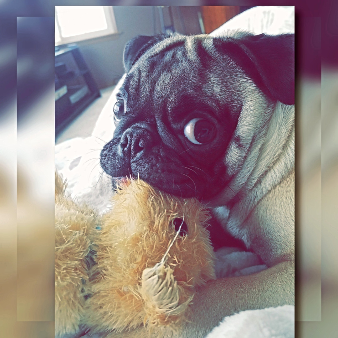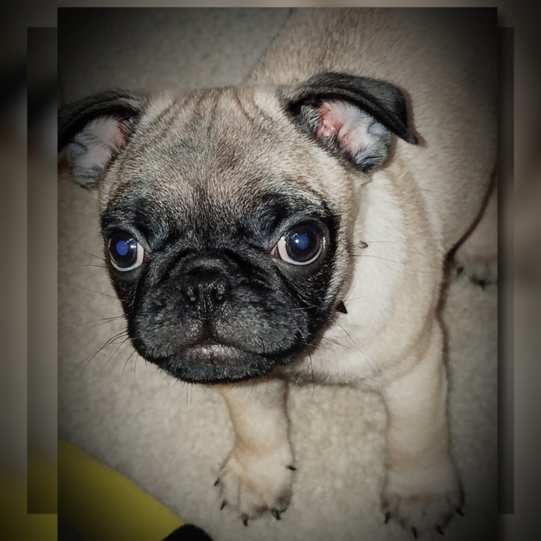 Wrinkly-faced pug named Taco: snorts like a pig, loves snacks, steals hearts, and rules the house with tiny paws 🐶🌮