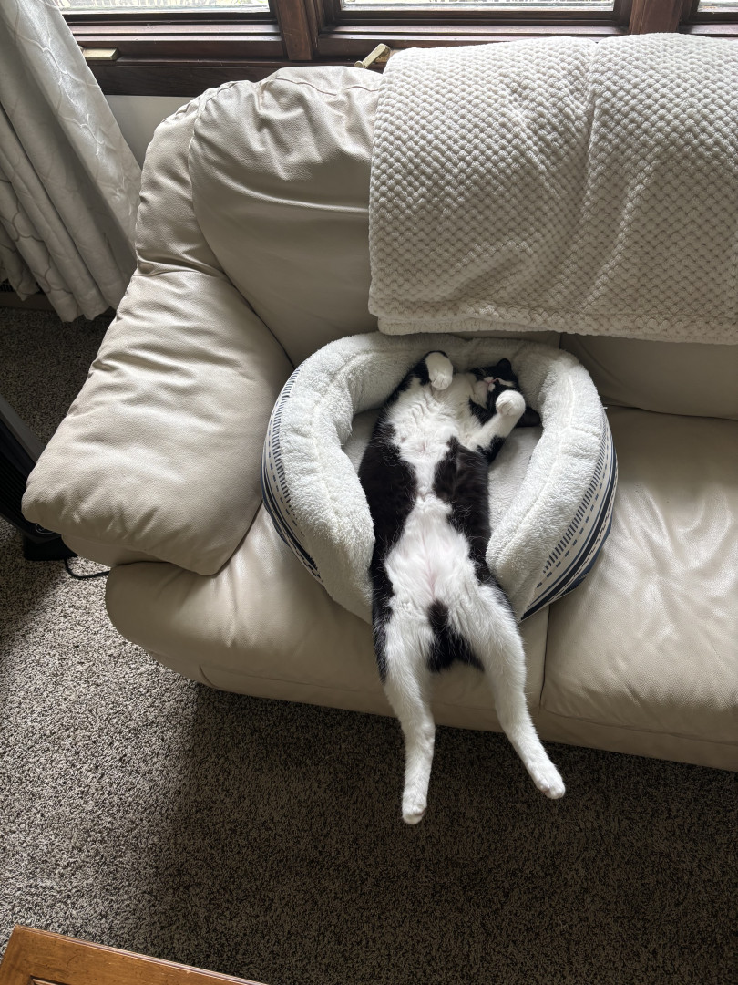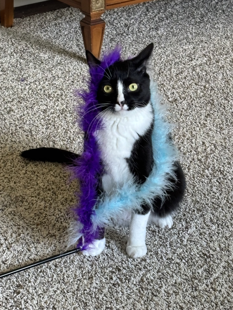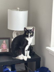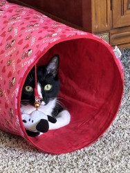 Taco is a tuxedo with plenty of energy. Always happy and looking for fun activities throughout the day. He’s goofy and a hunter.
