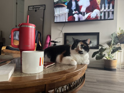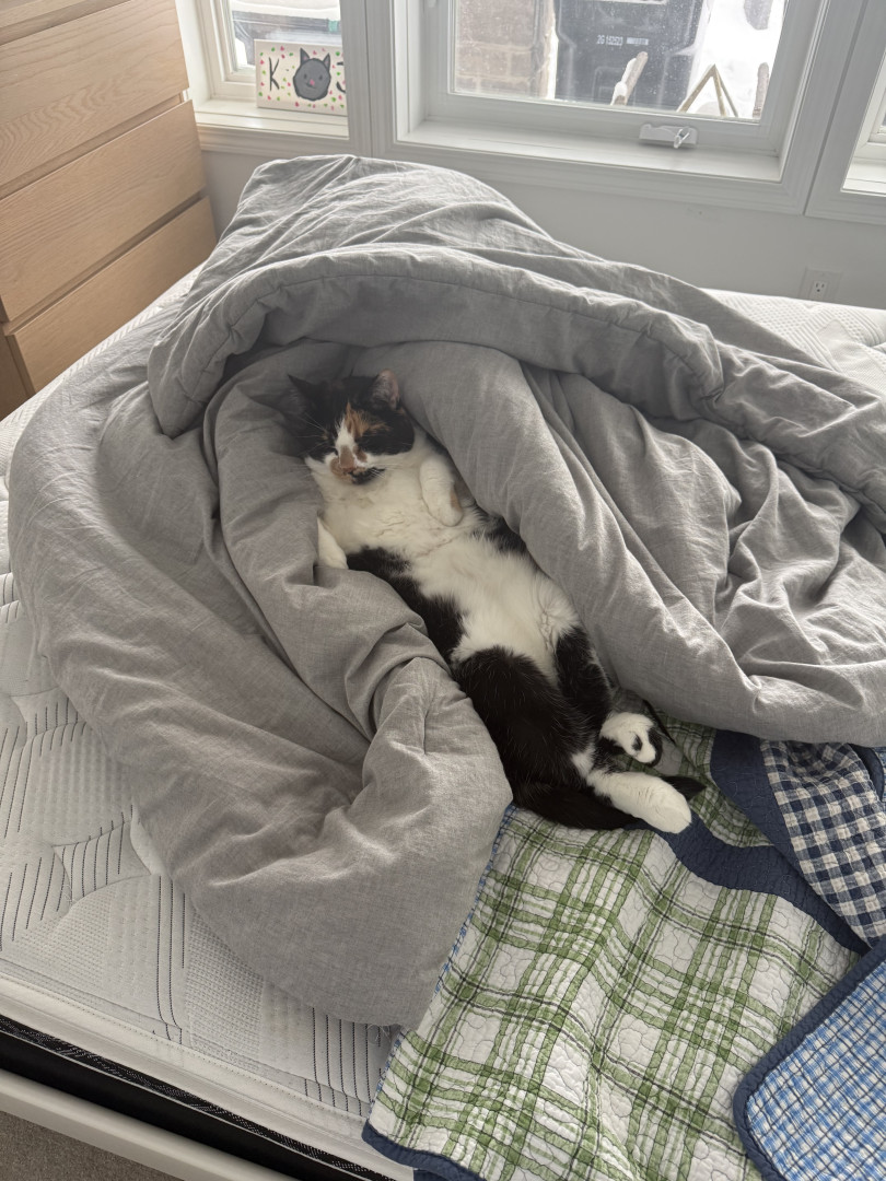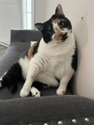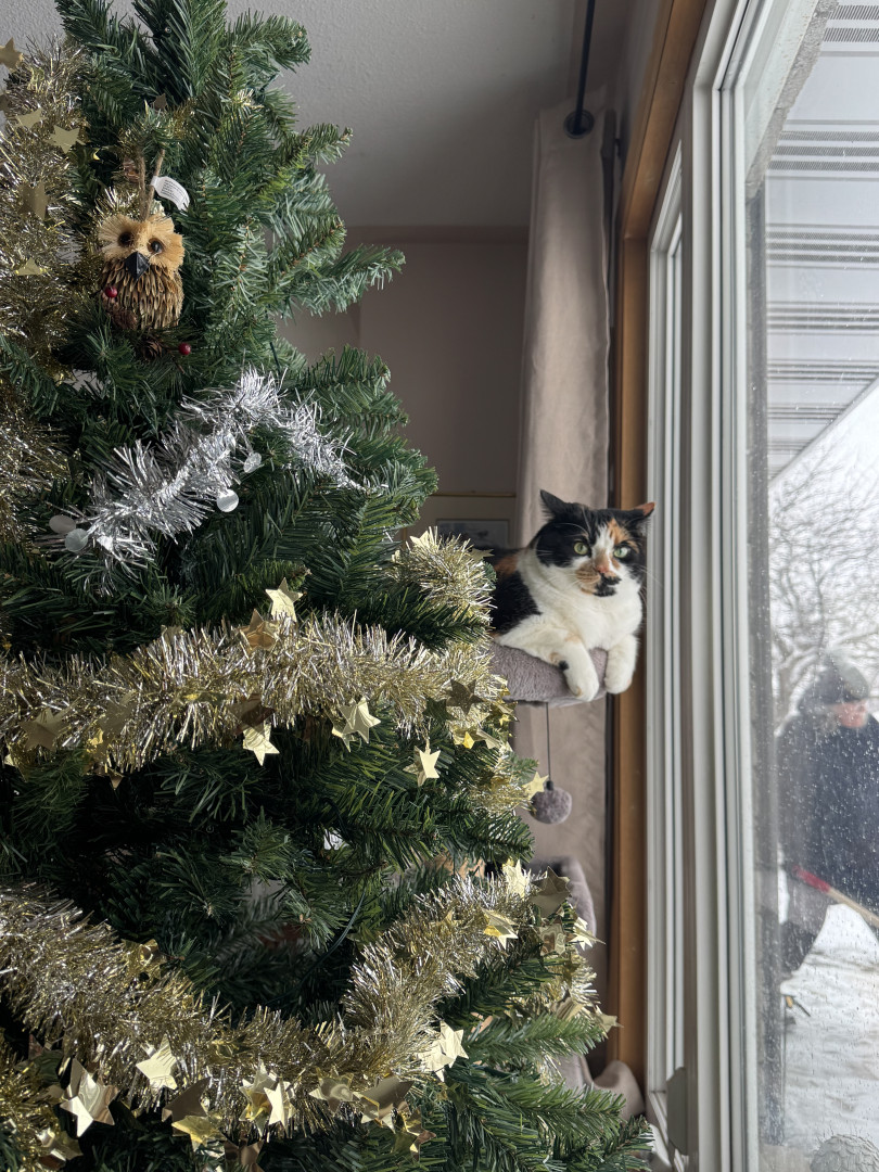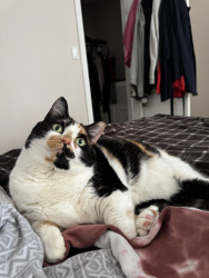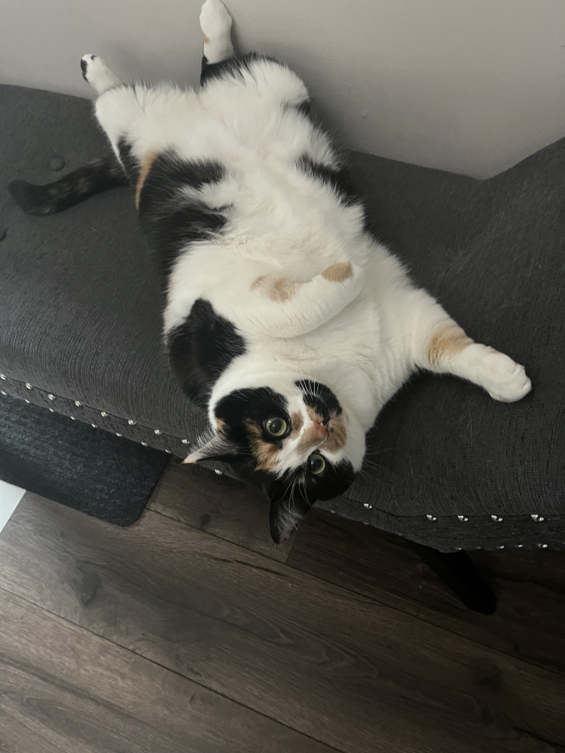 Tacocat is a spirited calico cat born in a barn north of Toronto. Her palindrome name mirrors her quirky charm! She saved my life.
