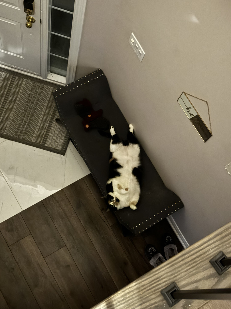 Her most unique quality is her empathetic nature; she senses when I’m down and offers comfort without fail, turning bad days around with purrs and gentle headbutts. Combined with her palindrome name (Tacocat spelled backwards is still Tacocat!), she’s one-of-a-kind—a barn-born rescuer with a heart of gold.