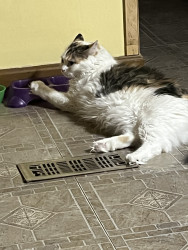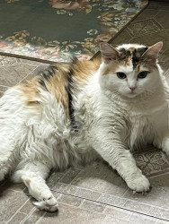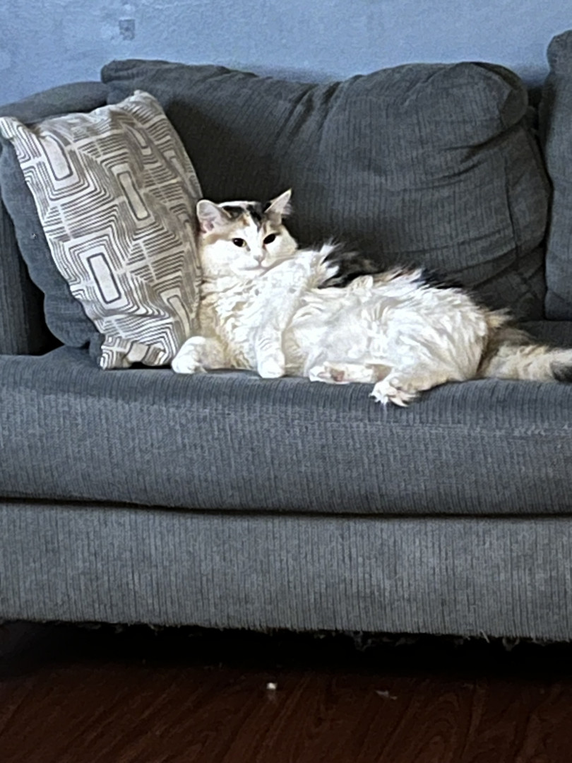 Pretty colors on her. She is a money cat. So she has all the colors in her fur. Very fluffy. Has a pretty face