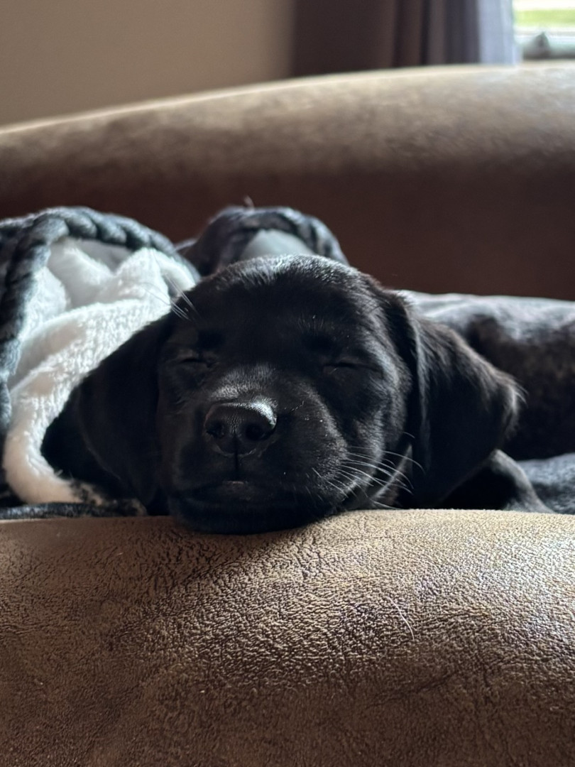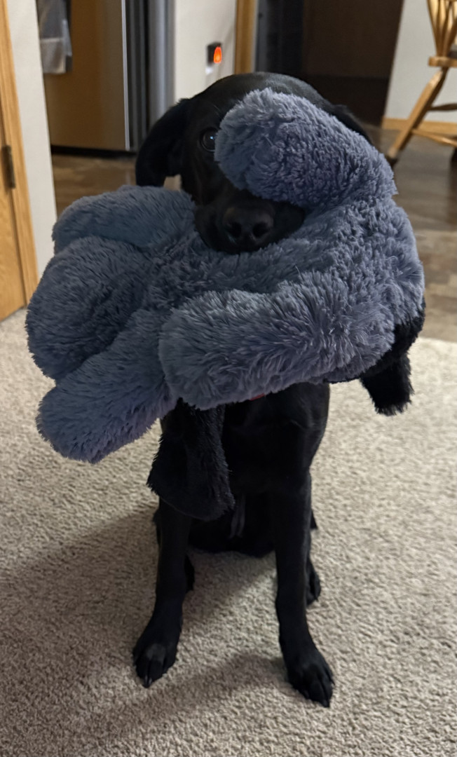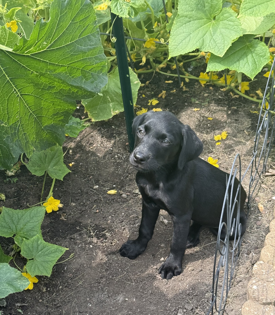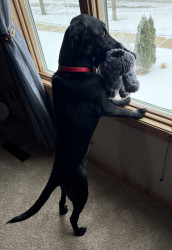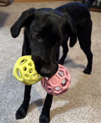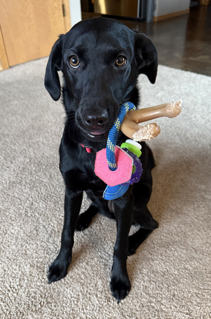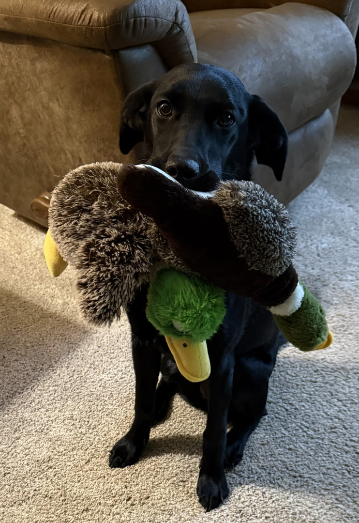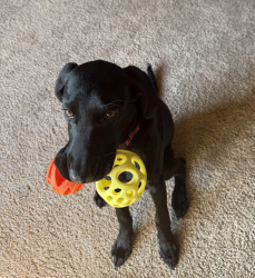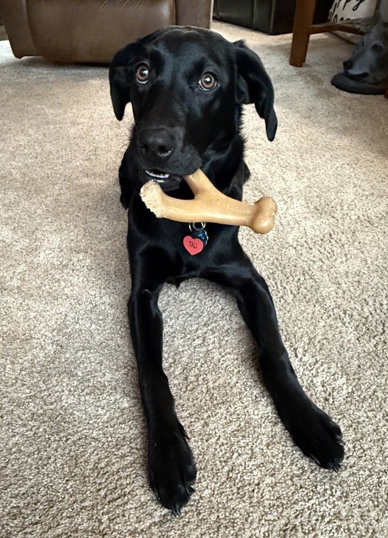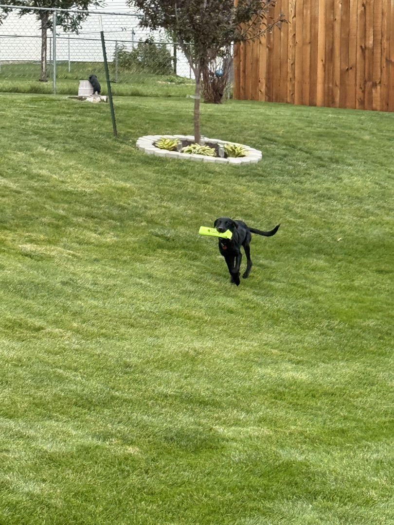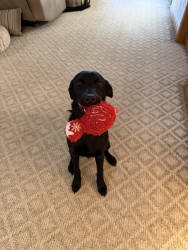 Tali, a 7 month old British lab is full of personality! Very intuitive to learning. Loves to hold it, pose for it, & run, run, run!