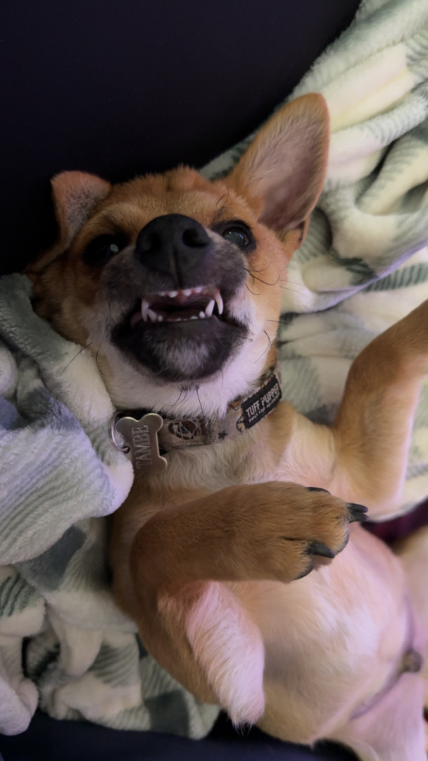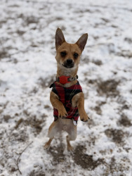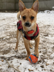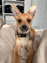 Tambe is a chihuahua mix, he is small but he has a big heart. He loves to cuddle,give kisses, and he loves to play with the big dogs.