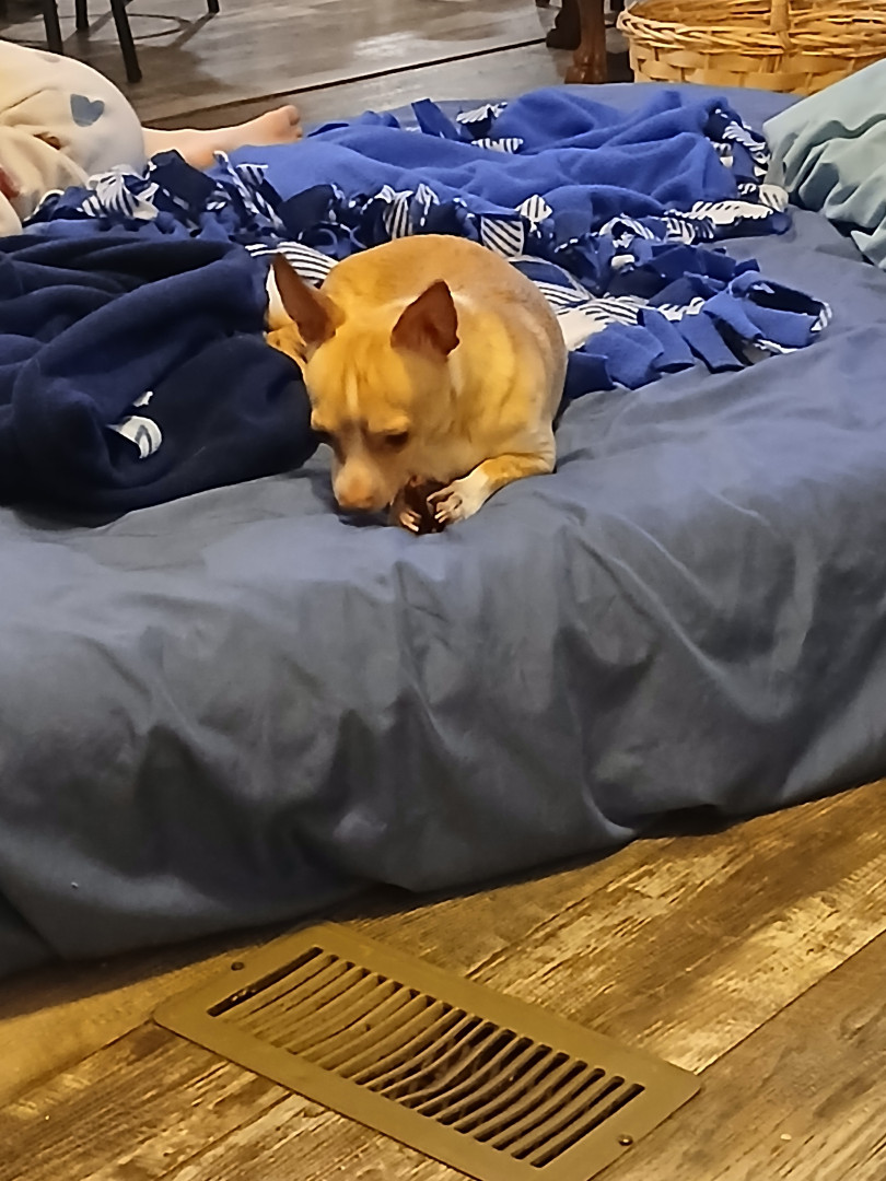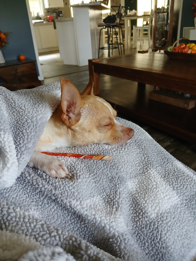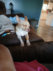 Tanner is the most loving dog we had a Chi that lived to be 23 years old and when Molly passed away you could tell he knew something was different he would go to where her bed had been and sniff and stand there like he was trying to find her.. When his daddy's sugar dropped he barked at him and kept nudging him.. Sure enough his sugar had dropped below 50.. He loves to lay right against mommy when we are in bedor on the couch. He's the perfect little snuggle buddy anyone could want