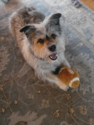 Learn MoreTanner LOVES opening packages. Christmas day, tearing open packages is the happiest he is all year. He will play with any toy that is brand new like it's the greatest toy ever. He loves all food, but pizza and marrow bones are his favorite.