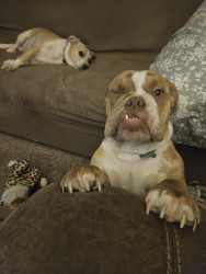 American bull dog that we rescued.. he is 7 months old and is a pleasure to work with..