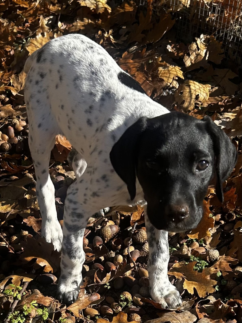 Tater is 13 weeks old and she was digging a hole hence her muddy nose. She is a german short hair! Sweetest puppy ever! We love her so much