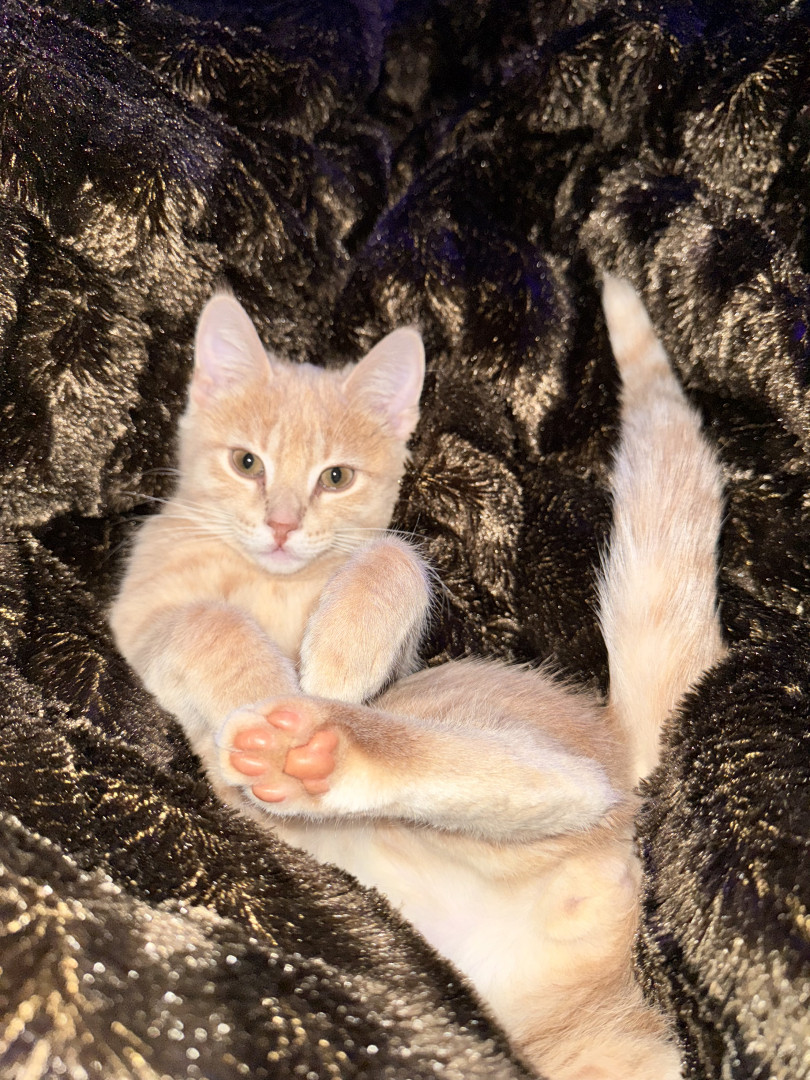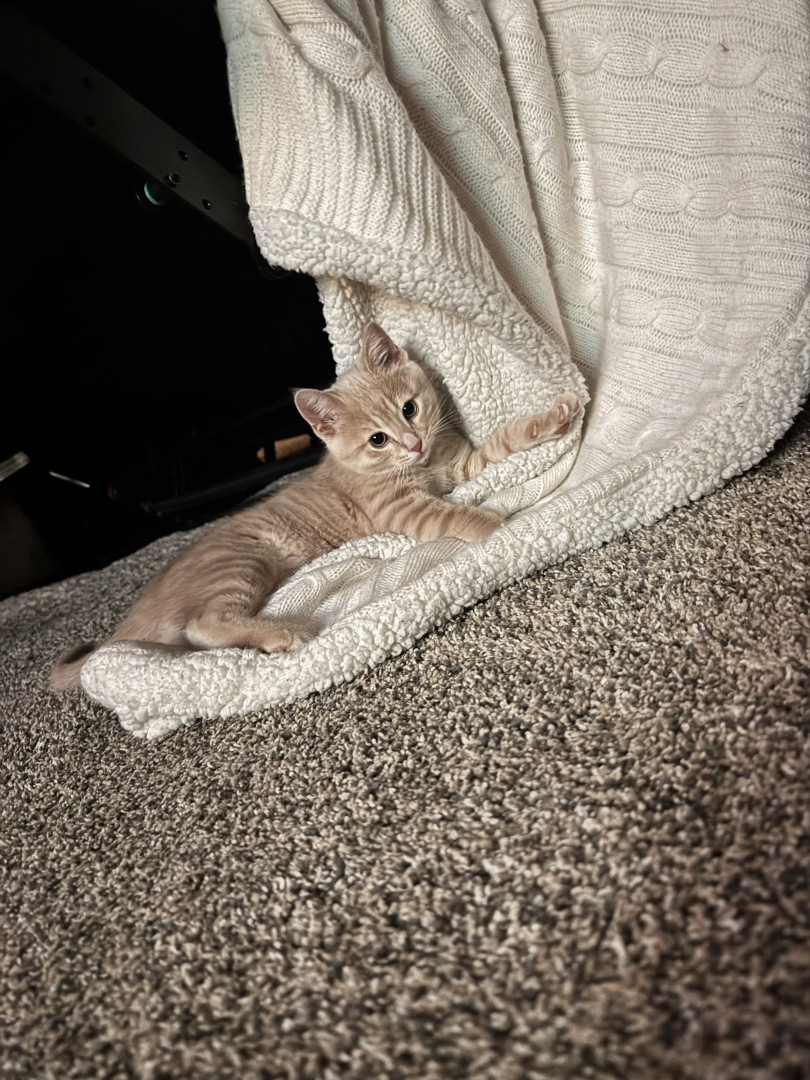 Meet Tater, my fiery orange troublemaker. He operates strictly in Sour Patch mode: terrorize the house, then snuggle like nothing happened.