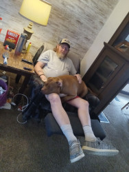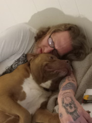 Tater was a rescue pup he had a hard life he was a fighter. When I got him he was skin and bones. He came right to me and licked my hand and I fell in love on the spot. He was knocking on deaths door. Nothing but love and compassion in him now.
