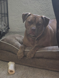 Tater is a 2 year old rescue dog which we have had for about a year. He is thought to be a Staffy bull terrier. He is very smart and very s