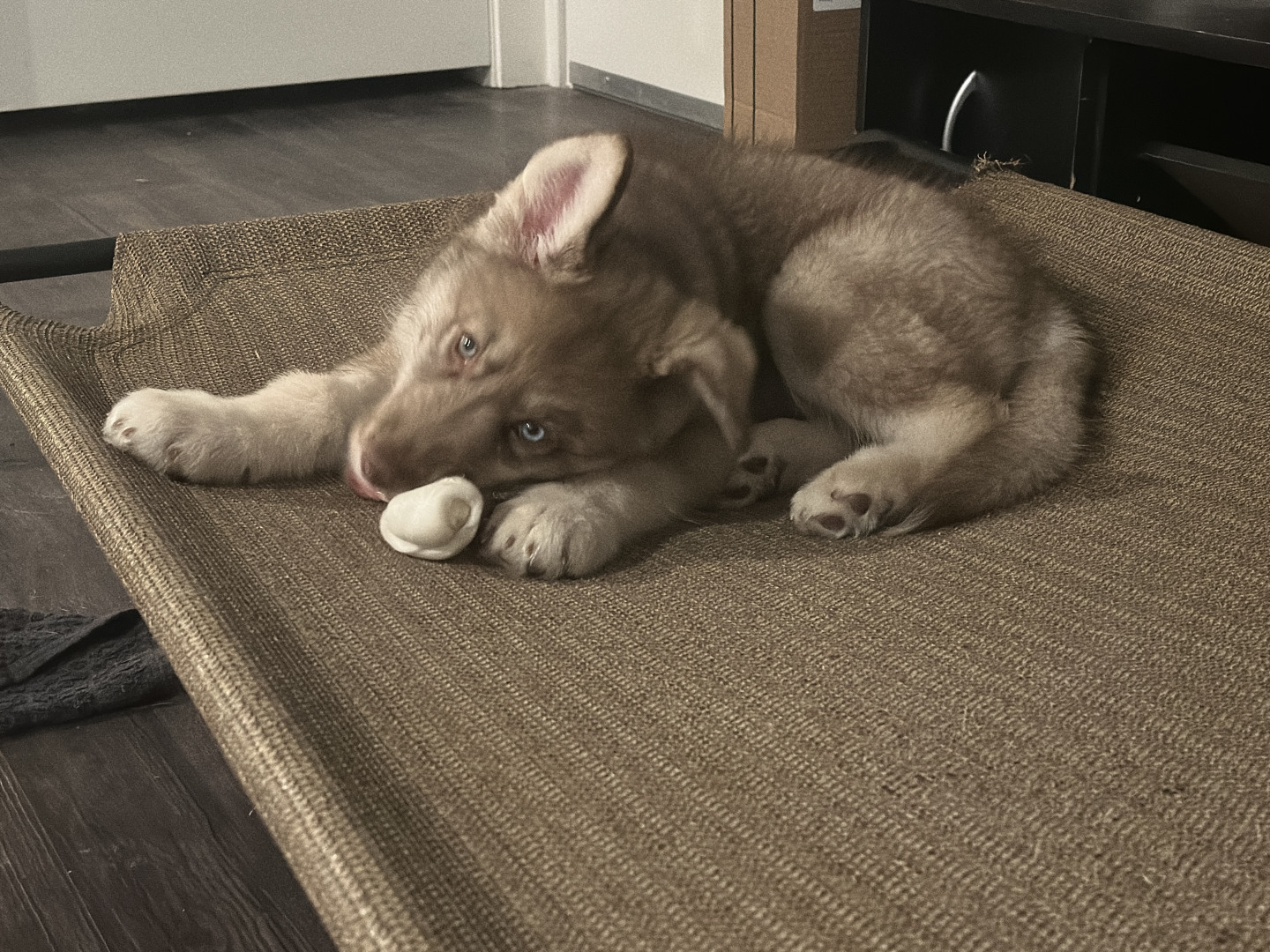 He’s very strong willed & confident for a puppy that’s so young (10 weeks). Loud noises or unfamiliar things don’t budge the little guy at all!