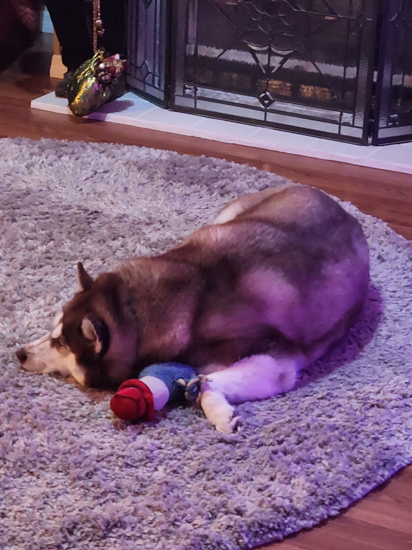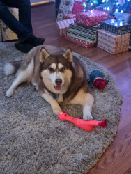 Learn MoreA rope snowman that squeaks, and that's her baby! She also has a chicken that squeaks that she goes crazy for.