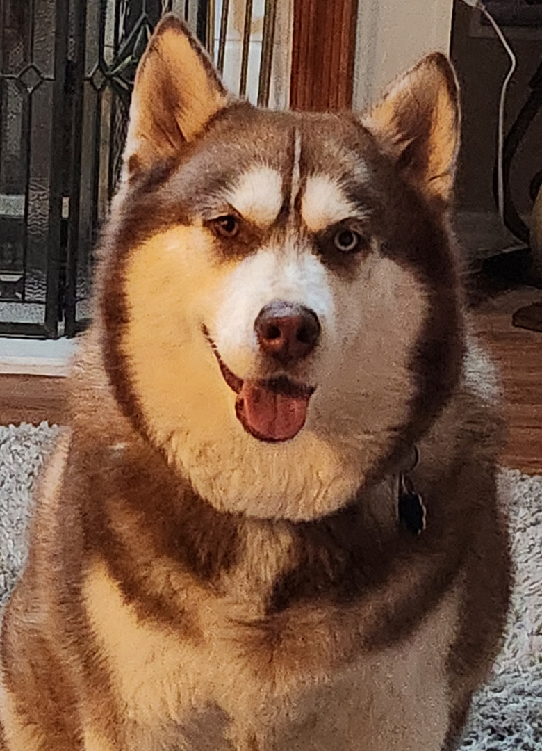 True love bug! Loves everyone, and will lick you to death. She is a rescue, and shows her appreciation everyday.