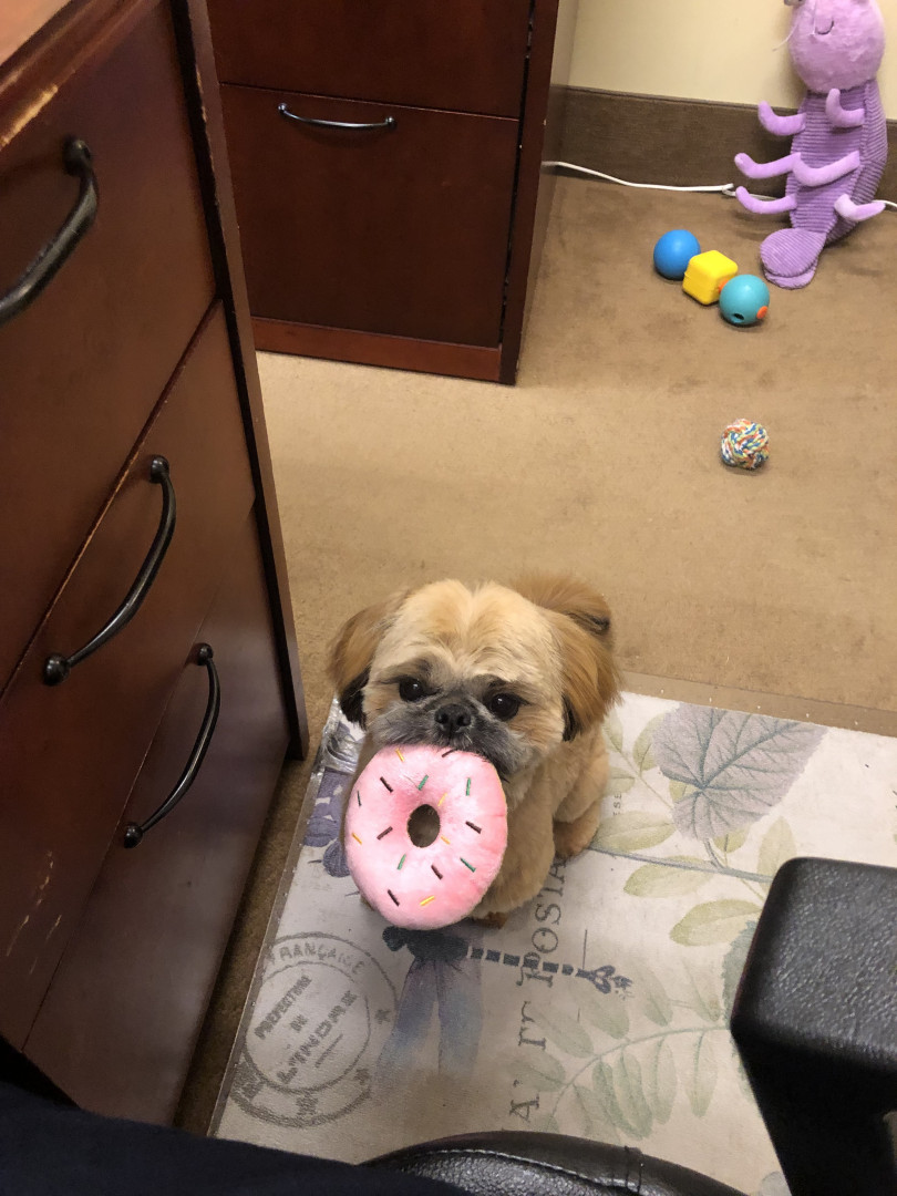 He is the most perfect little dog he is super smart, when you ask him to get a specific toy he will go and get that toy. He loves to get belly rubs.