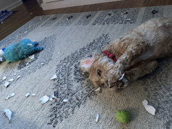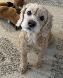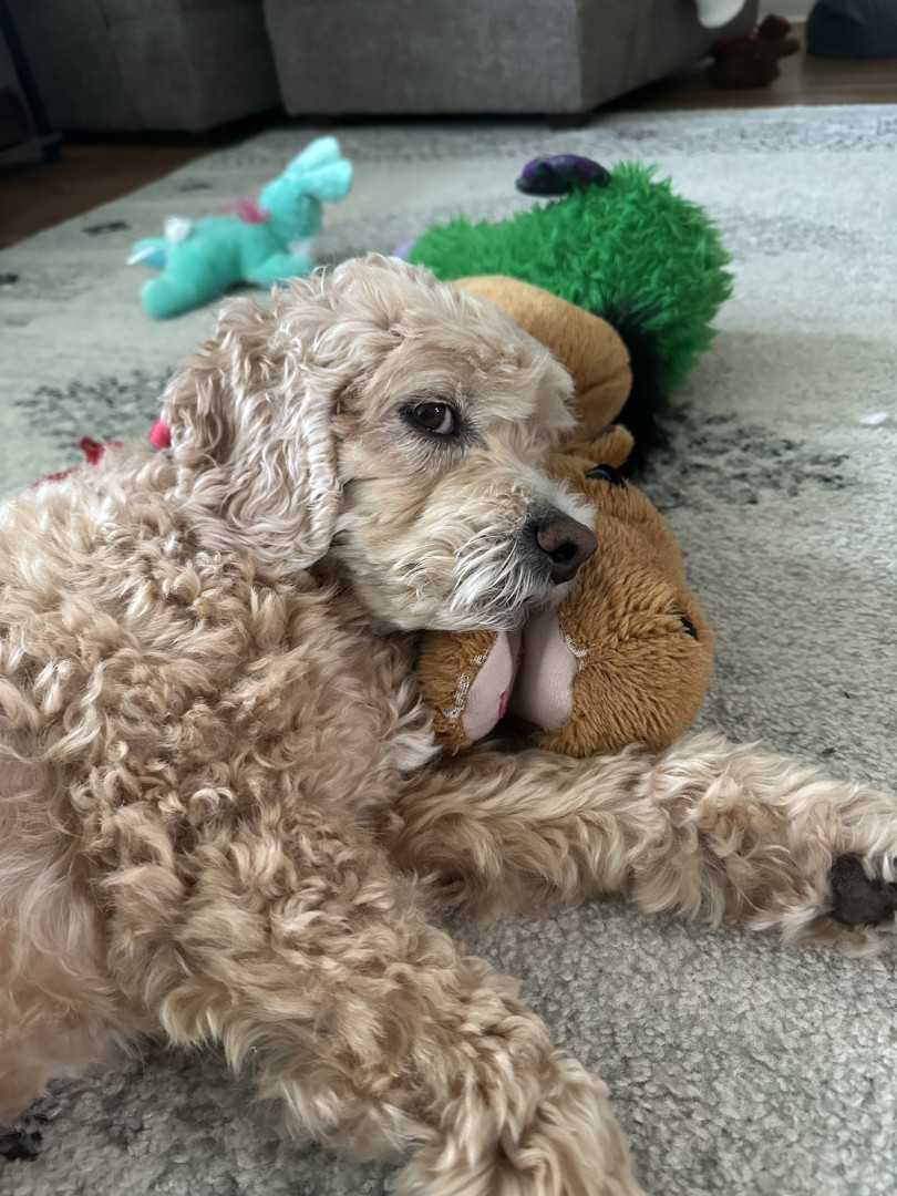 Teddy is a cockapoo. He is very playful and such a love bug.