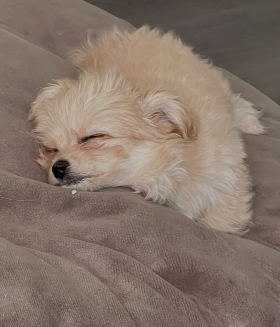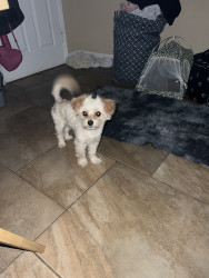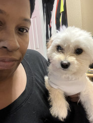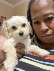 Teddy is very small but he thinks he’s a big boy. You can hold him & pick him up with 1 hand. Everybody loves him & tries to take him home.