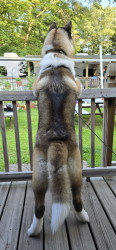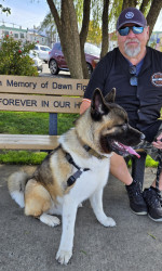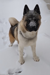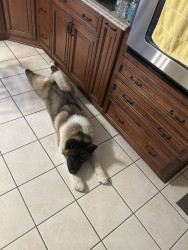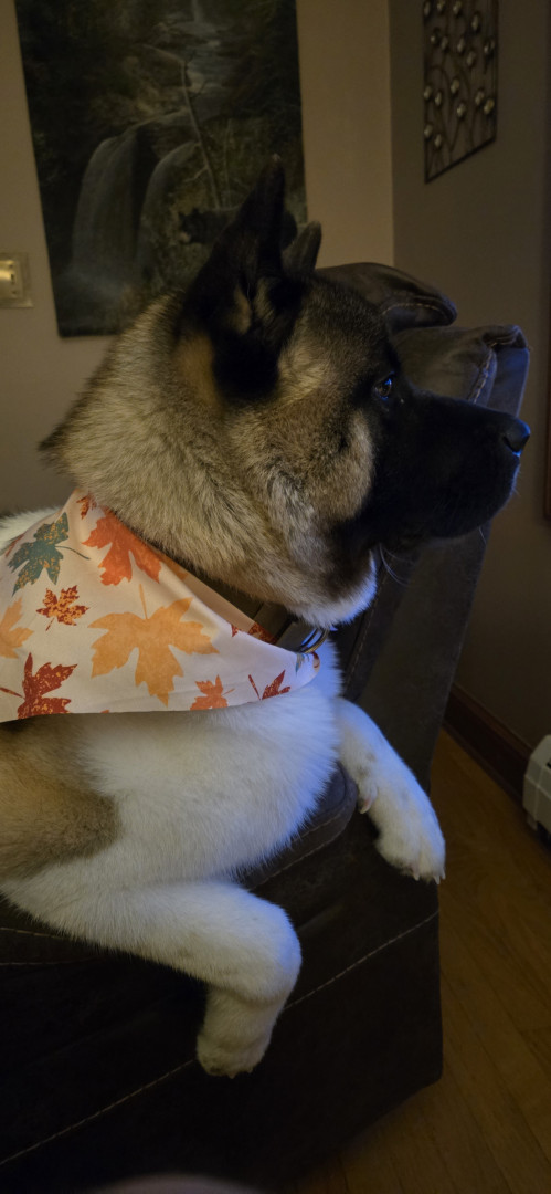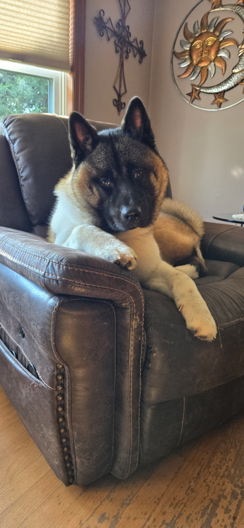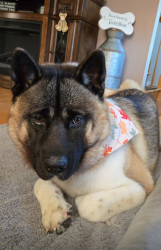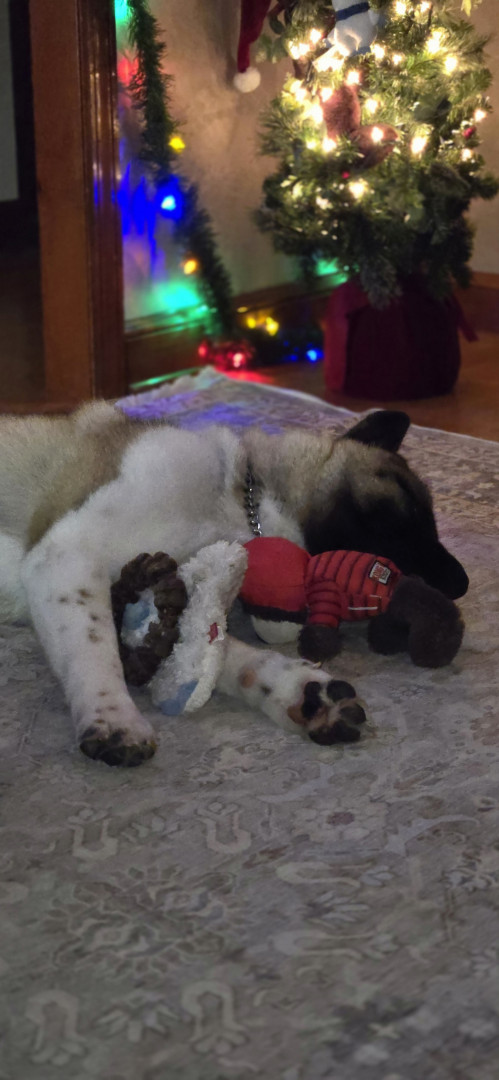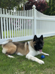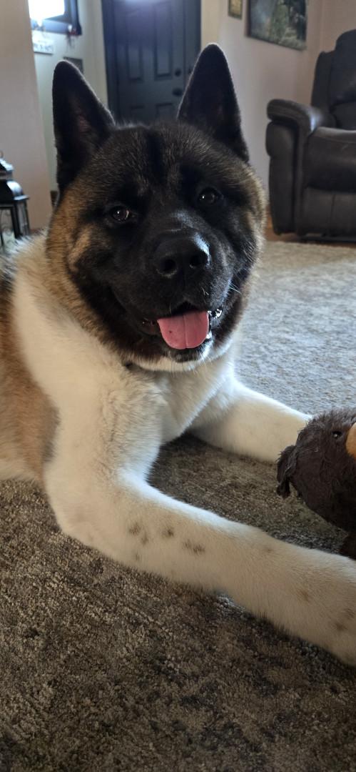 Teddy Bear is an American Akita. He loves affection, giving kisses, and playing with his toys. Teddy enjoys pup cups and rides in the truck