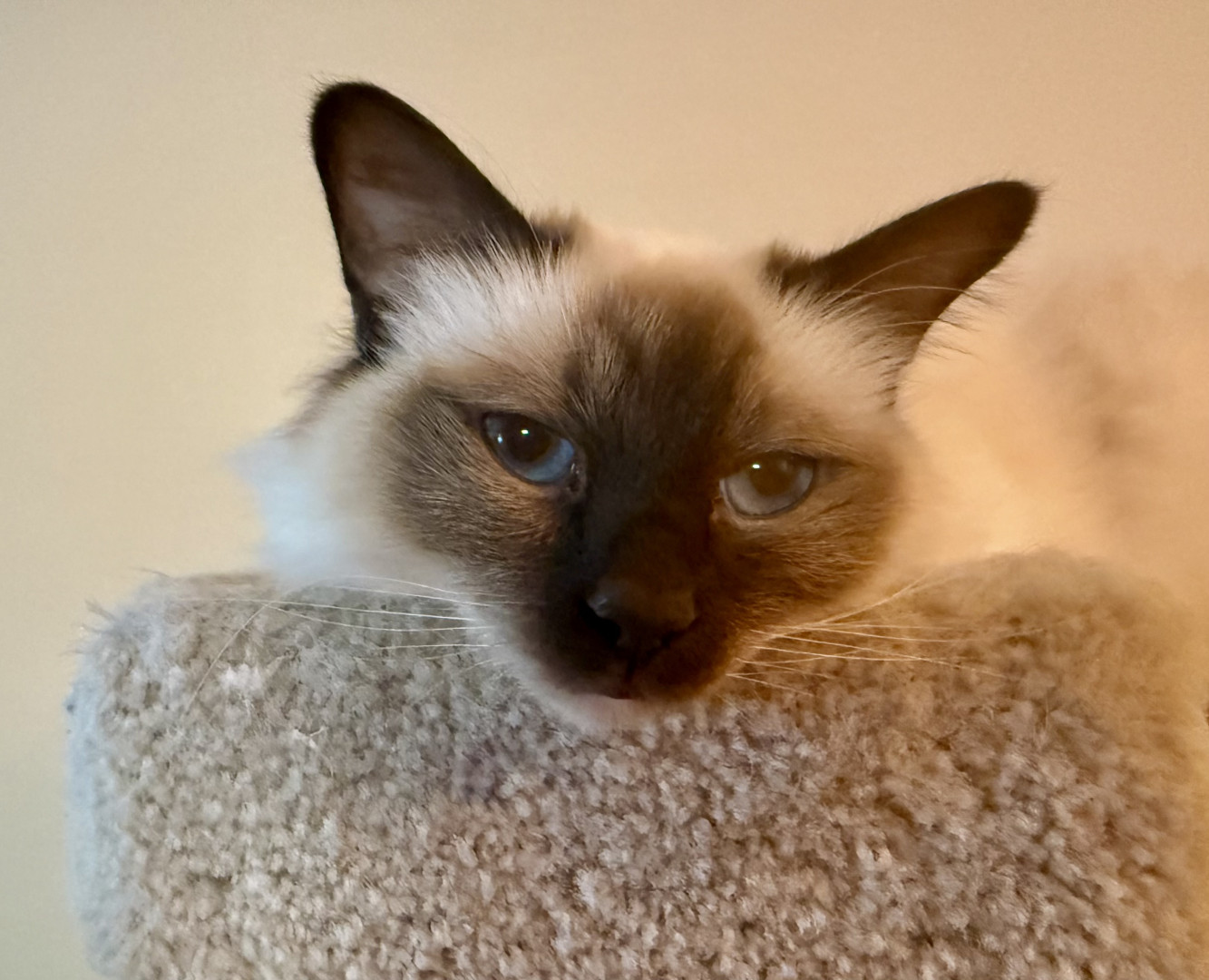 Teddy is a bundle of joy! Loved to be on your lap. Talks constantly telling you what he wants. A gentle, soft ,delightful Companion.