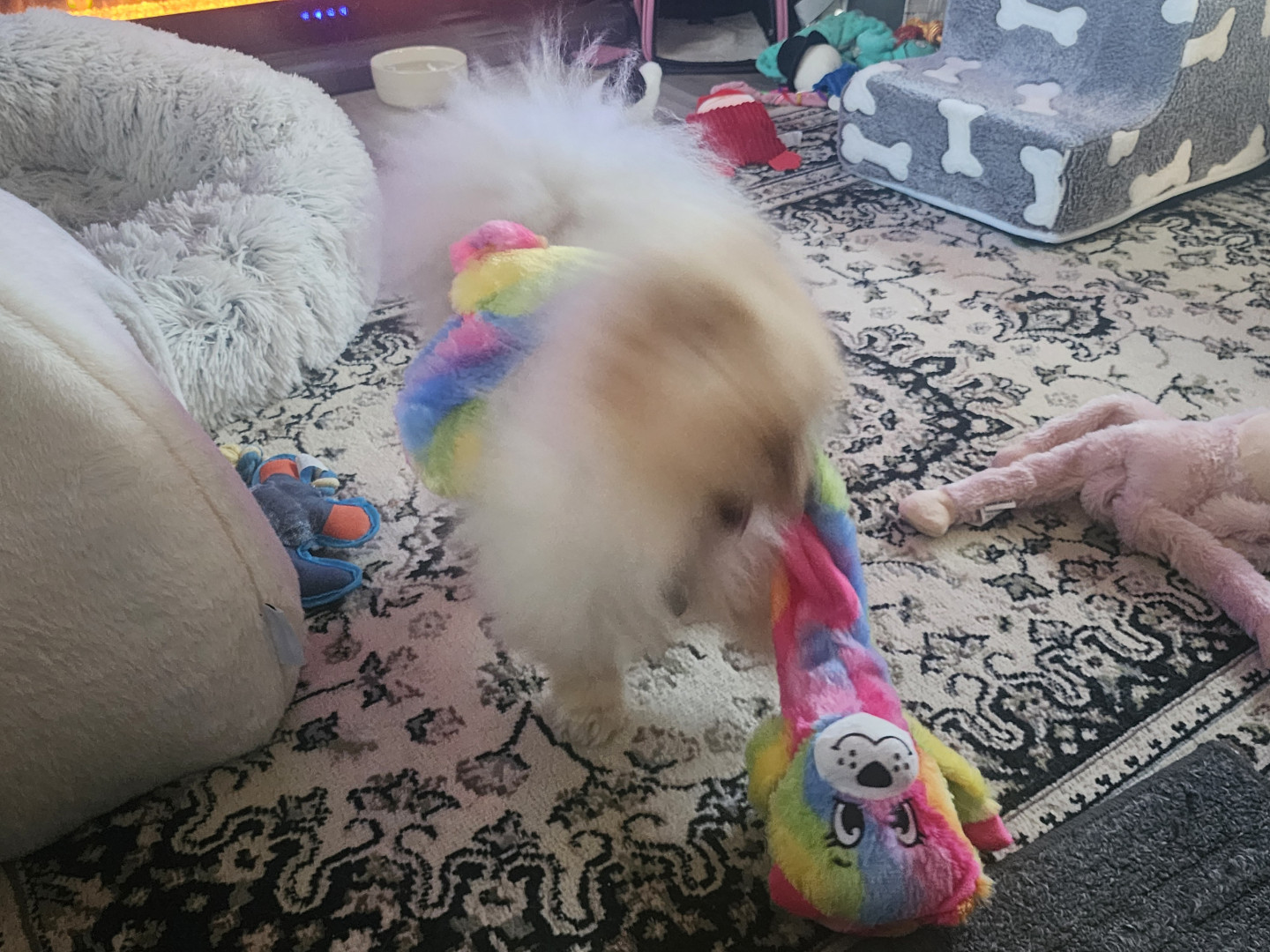 He loves all animals He gets into mischief just like a toddler pom full of joy Teddy is loved by all if someone sees him they get excited